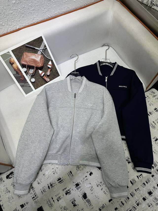 Miumi*2025 New Arrival: Zipper Jacket and Shorts Set. Made of custom Yb twill co