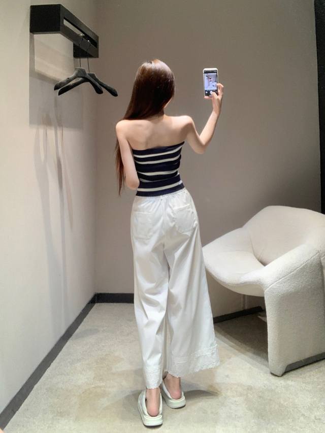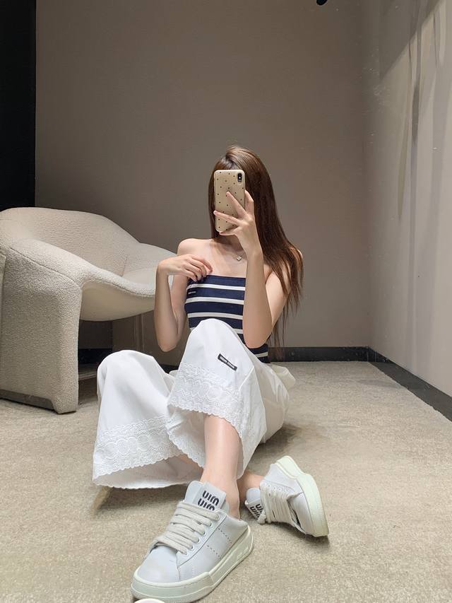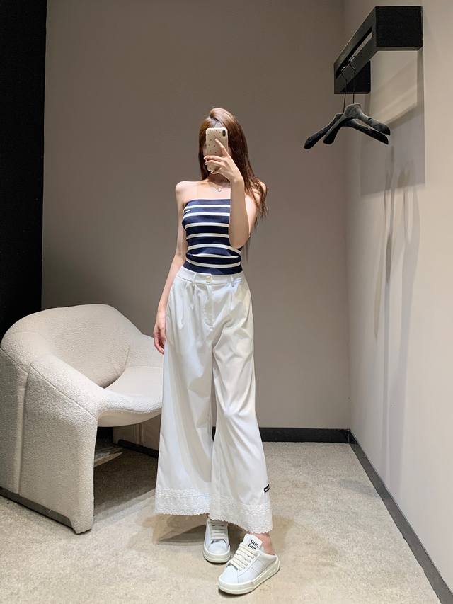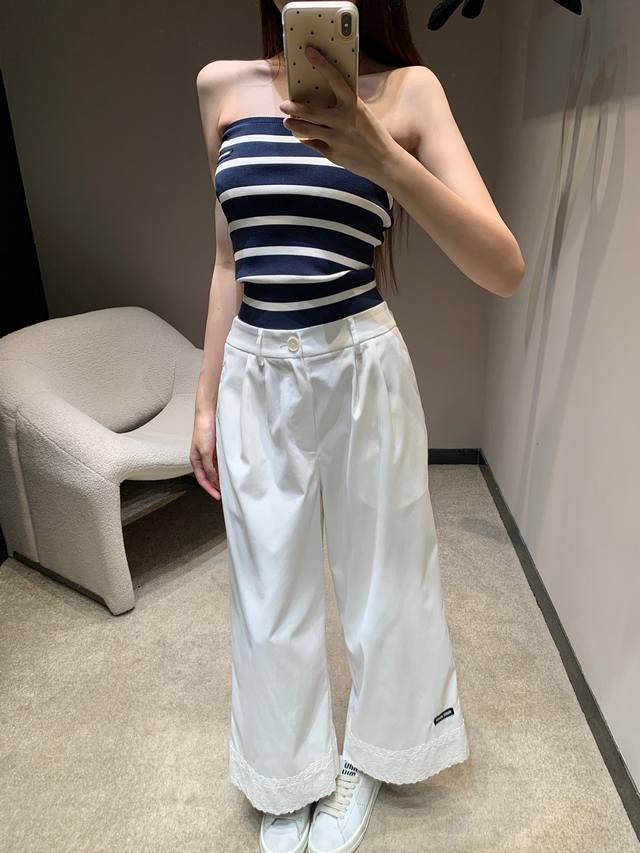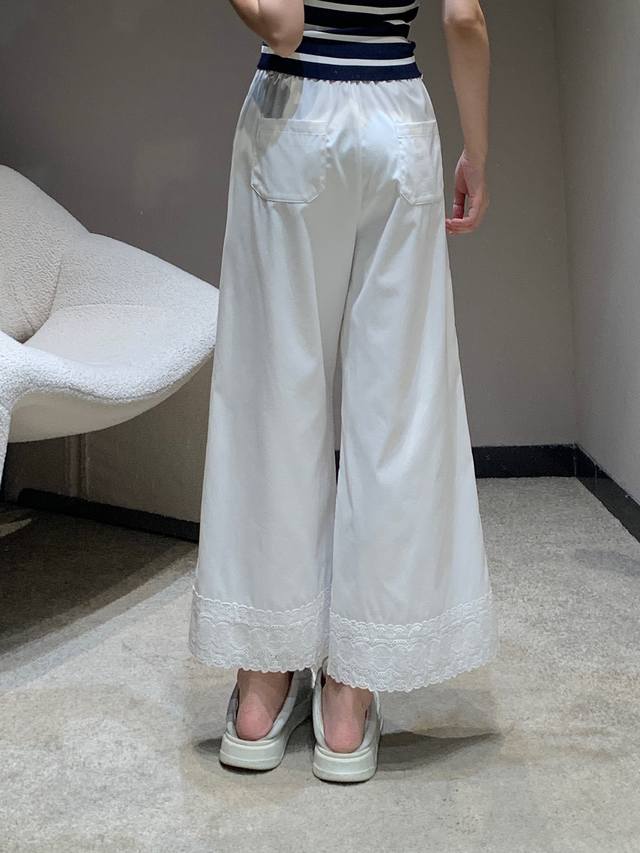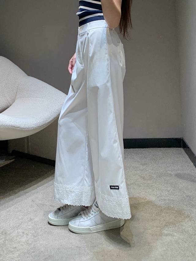 Miumi* 25Ss Spring and Summer new lace embroidery patchwork lace casual nine-point pants | Exclusive high-edition production! It is so comfortable to wear! Clean and neat pants can easily create a lazy and casual casual style. The loose straight version hides the flesh and makes you look thin. You can walk with the wind and look handsome. It must have a place. It is OK to match with various tops in daily life! In short, it is easy to wear and versatile. Sisters, close your eyes and go for it! Available now SML