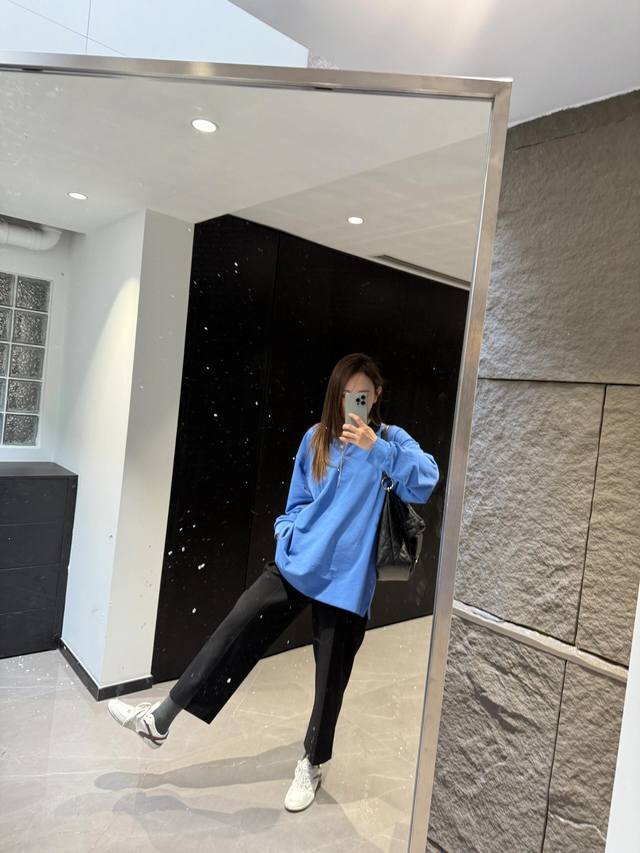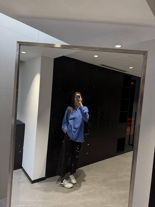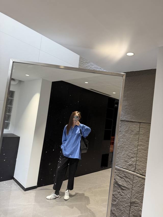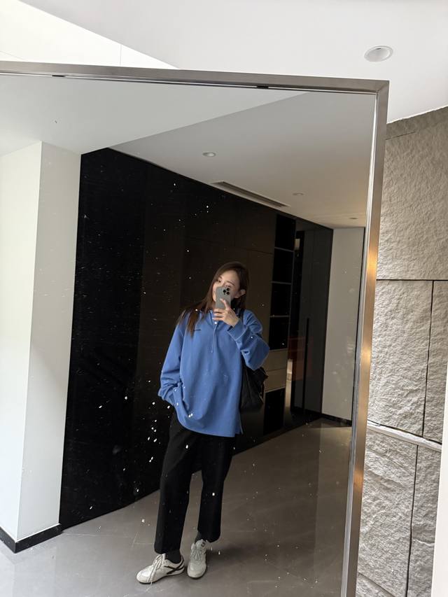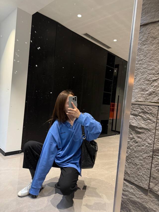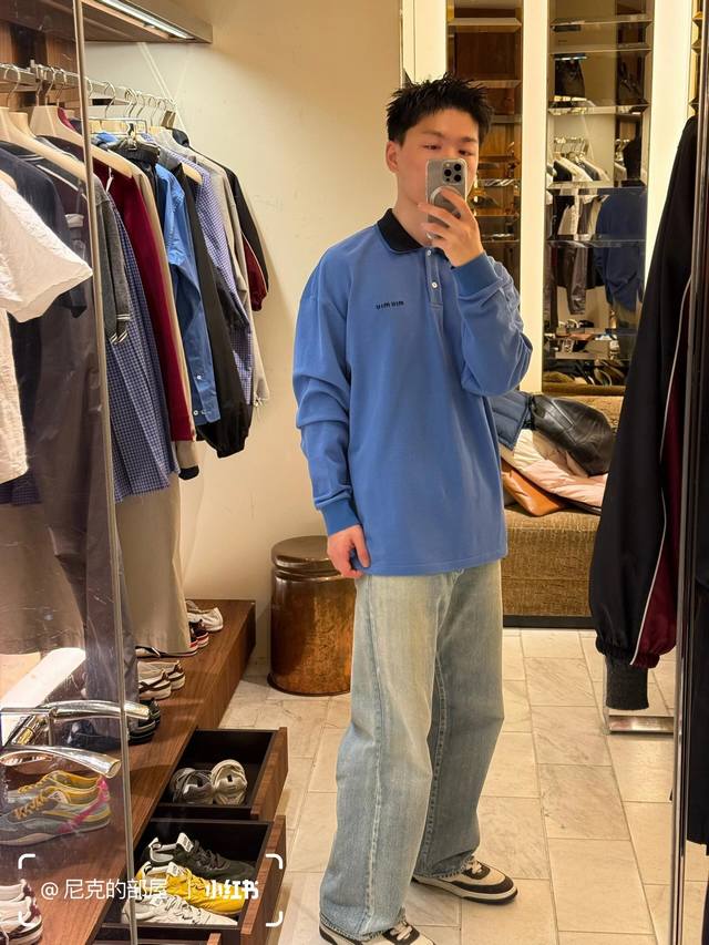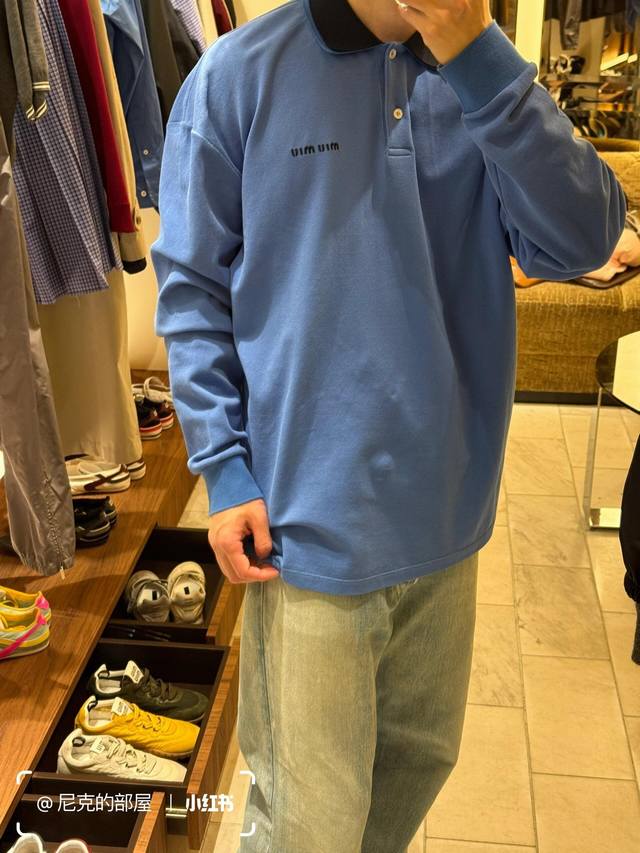 Miumi* 25Ss Spring/Summer new blue long-sleeved polo shirt with embroidered lett