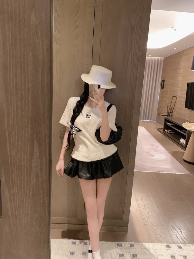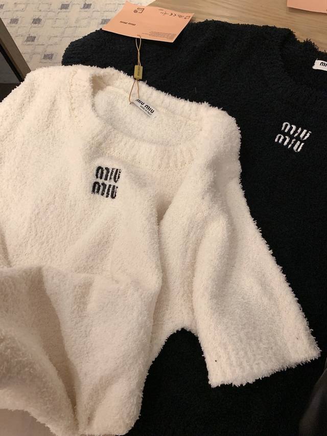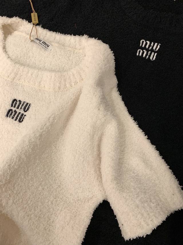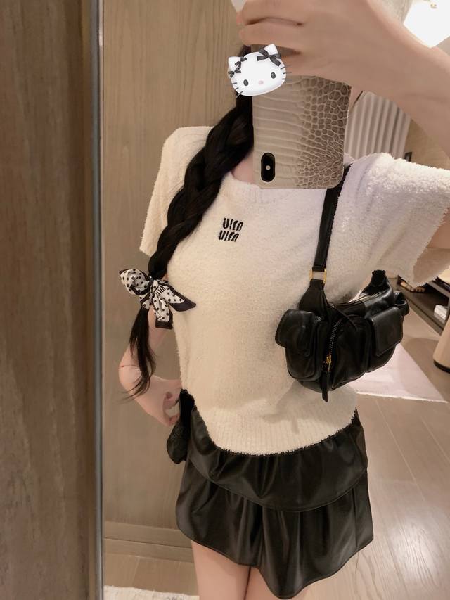 Miumi* embroidery-cut Korean velvet short-sleeved knitted sweater ~~ Age-reducing and versatile