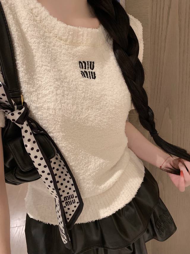 Miumi* embroidery-cut Korean velvet short-sleeved knitted sweater ~~ Age-reducin