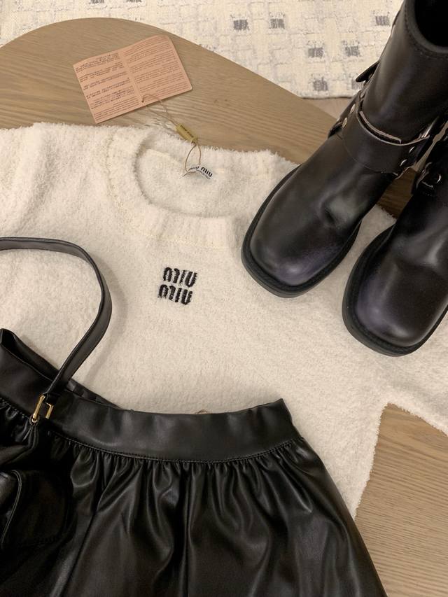 / Miumi* embroidery-cut Korean velvet short-sleeved knitted sweater ~~ Age-reducin