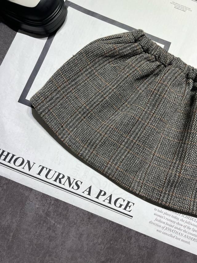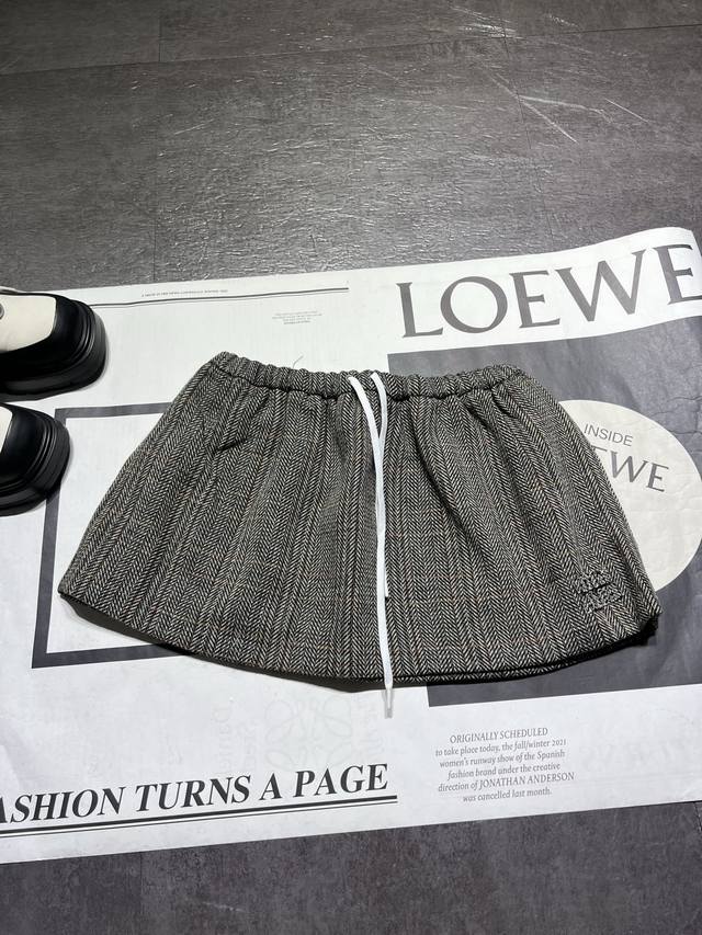 Miumi* ladies' dark gray and brown rubble pattern drawstring waist skirt is shipped. It is made of fully customized wool fabric and developed according to the version. Please note that the Miu Miu series skirts do not come with safety pants. Please do not disturb if you mind. Look for high-version wool fabric. Sml