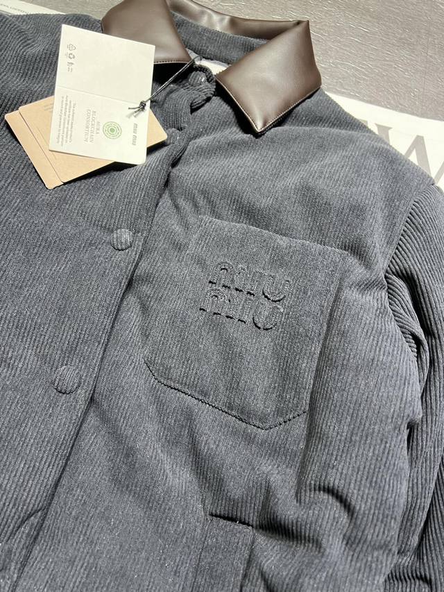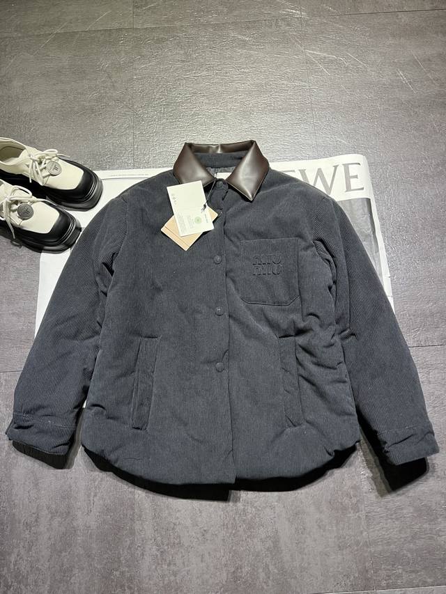 Miumi* Miumi 25 autumn and winter new style, leather collar corduroy down cotton jacket shipped, large version, unisex style, light and comfortable, autumn and winter one-piece solution, retro style, spot delivery Sml
