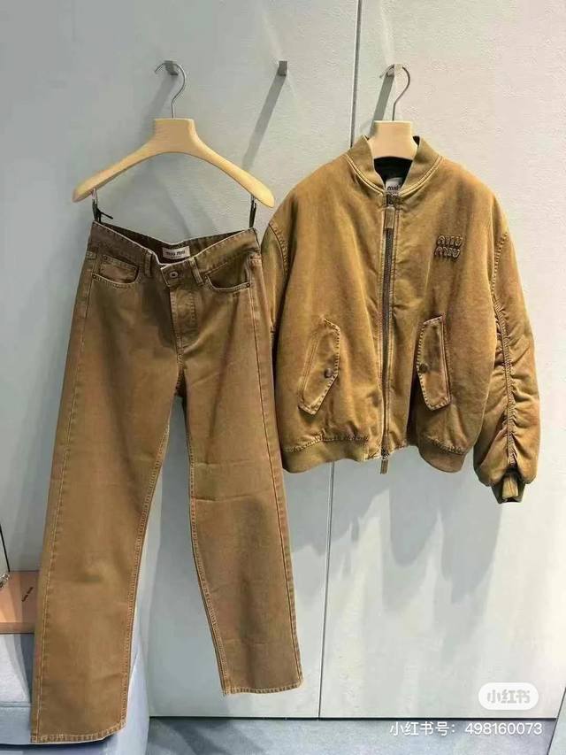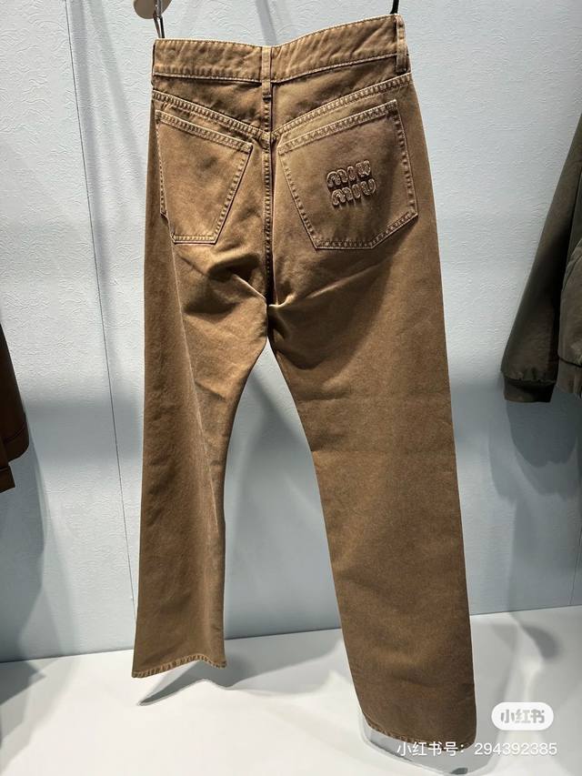 Miumi* New high-end custom washed denim cotton fabric, featuring original letter logo hardware and a patch logo on the back pocket. Stylish and simple straight-leg jeans! Sizes: 32 34 36 38 40 42 44 Size 38: Waist 70cm (non-stretch), Length 105cm, Waist