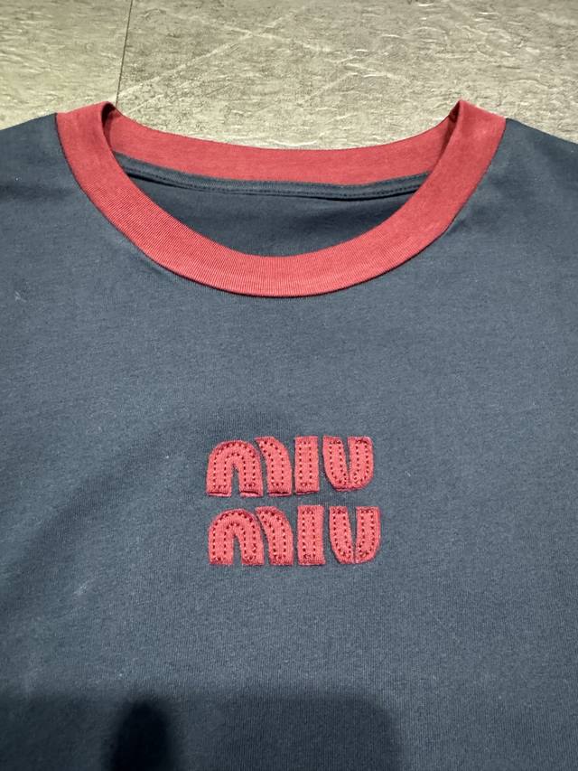 / Miumi* New navy blue long-sleeved T-shirt is now available. Features custom colo