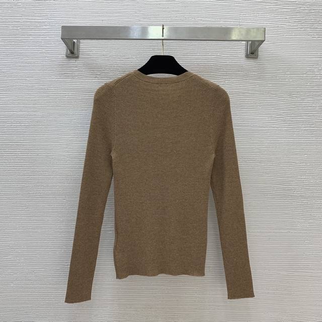 Miumi New Style Super Elastic Slim Fit Long-Sleeve Knit Top with Logo on Chest! Available in khaki, off-white, and black. Size M: Bust 62cm, Sleeve Length 60cm, Length 55cm. (
