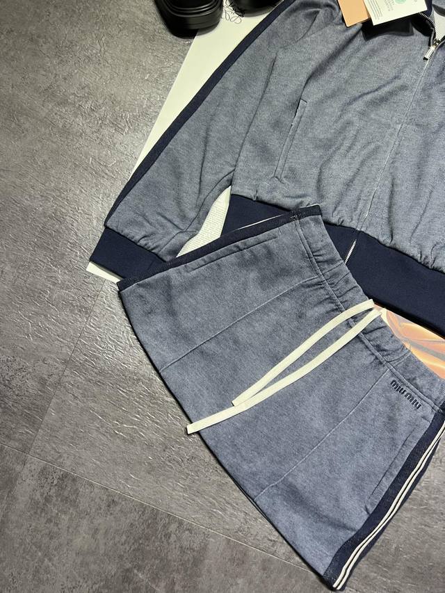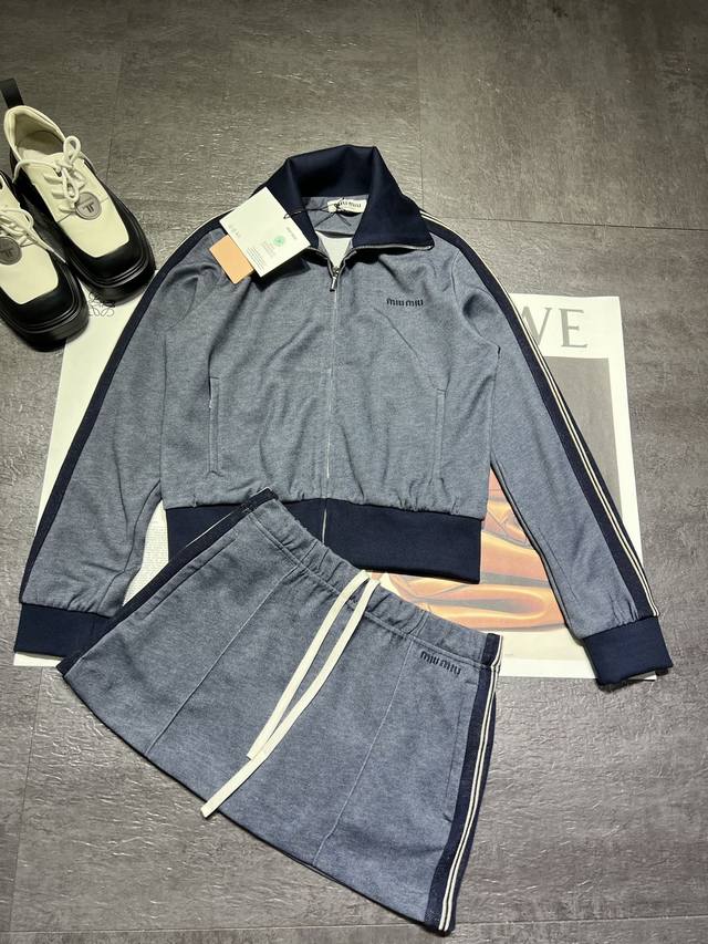 Miumi* Sporty Color-Blocked Jacket and Skirt - Now Available! Stay tuned for the latest styles! High-end version, the skirt is also a perfect match to the original design. We don't even have safety shorts in our closets! Custom-made ribbed detailing and exquisite embroidery. If you like high-quality items, come and get yours! ( Sml
