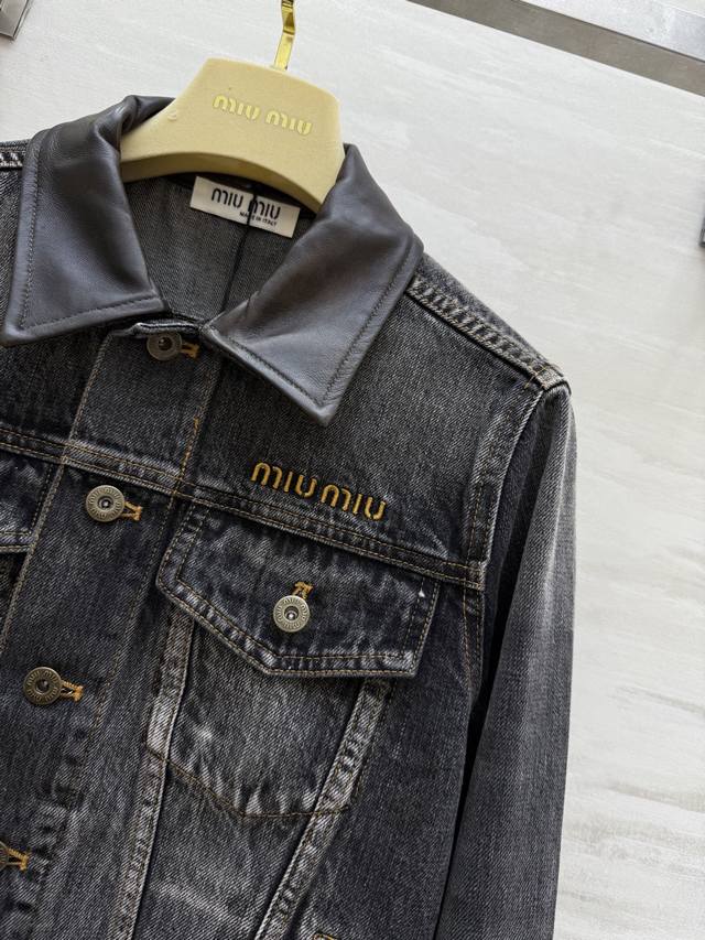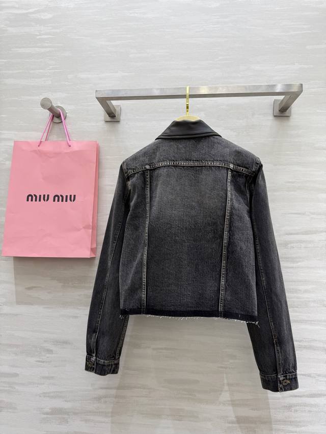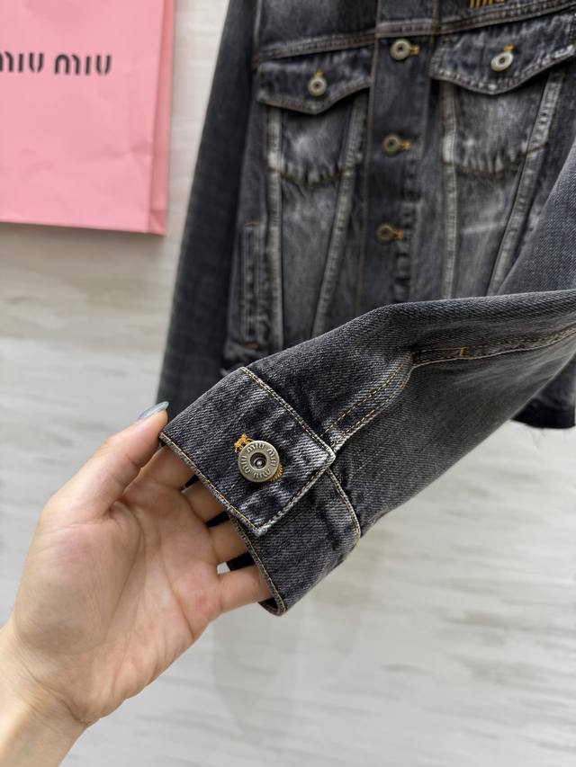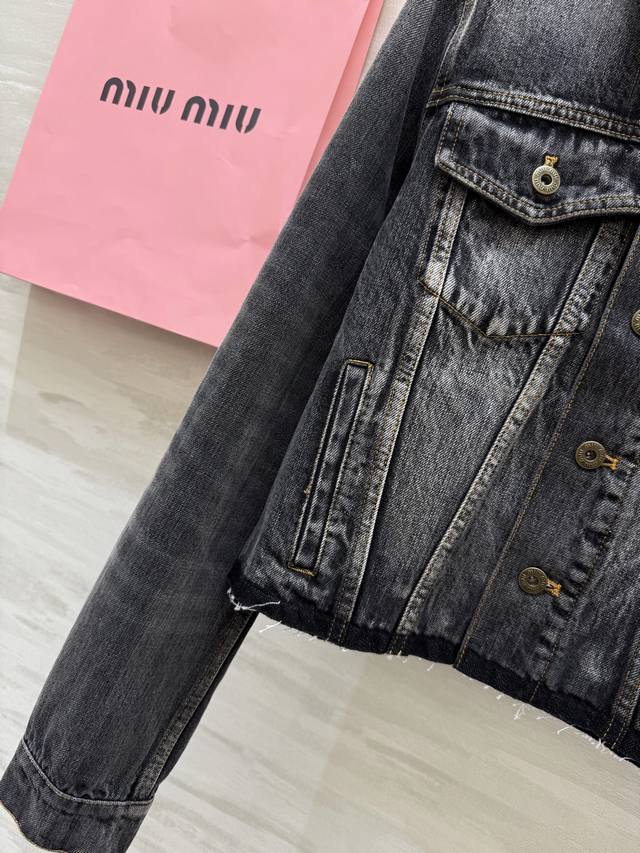Miumi2 Early Autumn New Style Distressed Denim Collar Denim Jacket High Quality Customized Spot First Release Size: SMLS Shoulder Width: 39, Chest: 92, Length: 47