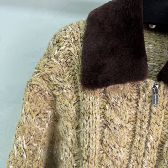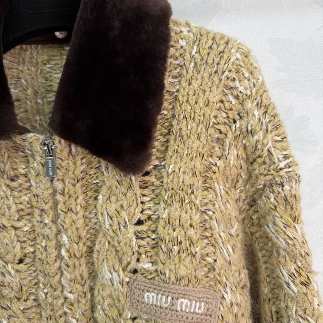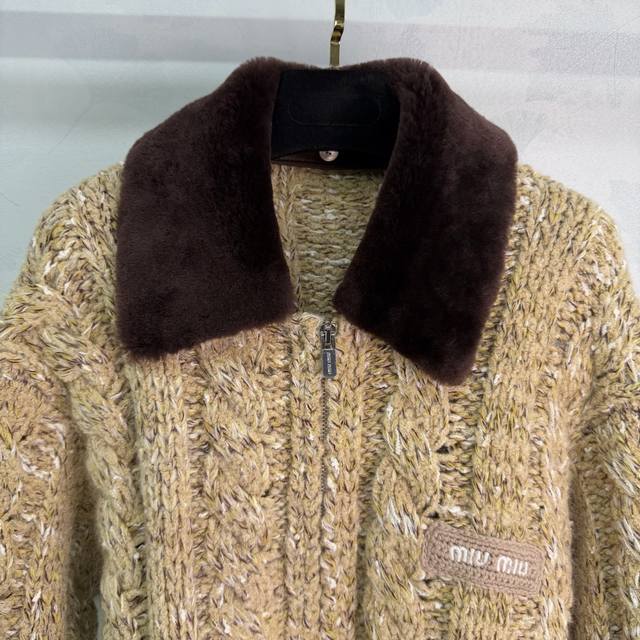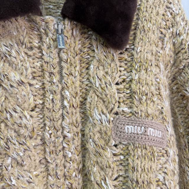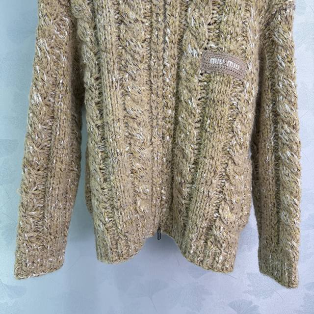 Miumi*2025 Autumn/Winter New Style Fluffy Lapel Snowflake Dot Zip-Up Cardigan! Made with custom Yb wool yarn, it's delicate, soft, and highly elastic. This exquisite hooded zip-up cardigan features a finely textured knit throughout, with two-tone snowflake dots interspersed. Ribbed elastic trim visually slims the figure, and a three-dimensional letter logo on the chest adds to the overall detail. The basic style combined with its warmth and thickness creates a strong retro-preppy look. Perfect for transitional seasons, it's fashionable, youthful, and easy to wear every day. Available in 1 color and 3 sizes: S, M, L, T226B, DDD
