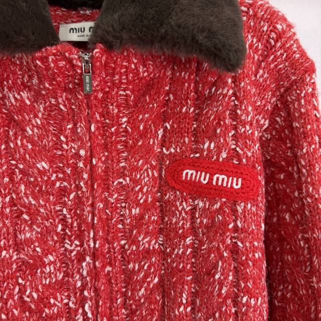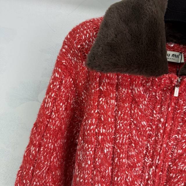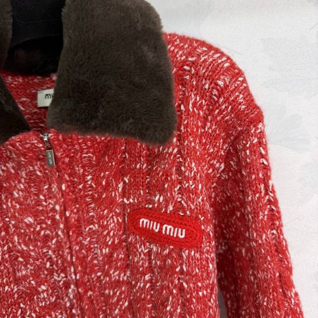 Miumi*2025 Autumn/Winter New Style Fluffy Lapel Snowflake Dot Zip-Up Cardigan! Made with custom Yb wool yarn, it's delicate, soft, and highly elastic. This exquisite hooded zip-up cardigan features a finely textured knit throughout, with two-tone snowflake dots interspersed. Ribbed elastic trim visually slims the figure, and a three-dimensional letter logo on the chest adds to the overall detail. The basic style combined with its warmth and thickness creates a strong retro-preppy look. Perfect for transitional seasons, it's fashionable, youthful, and easy to wear every day. Available in 3 colors and 3 sizes: S, M, L, T226B. DDD