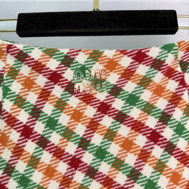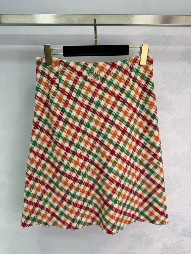 Miumi*2025 Early Fall new straight-cut plaid colored skirt, custom-made from imp