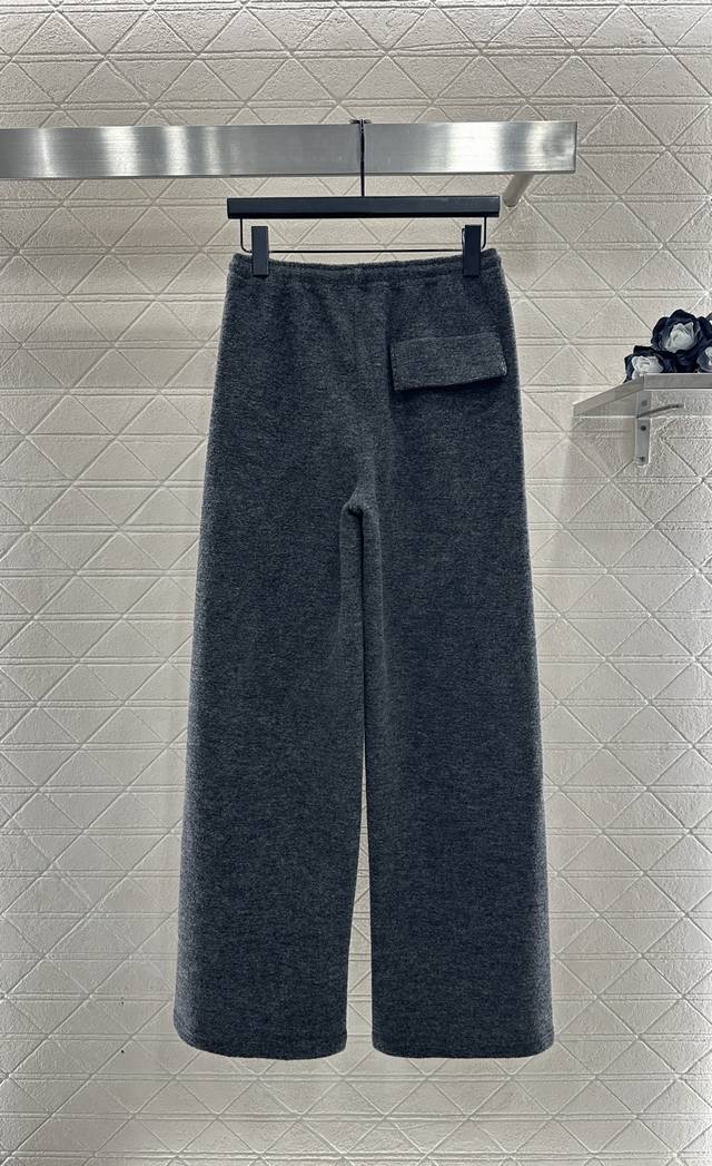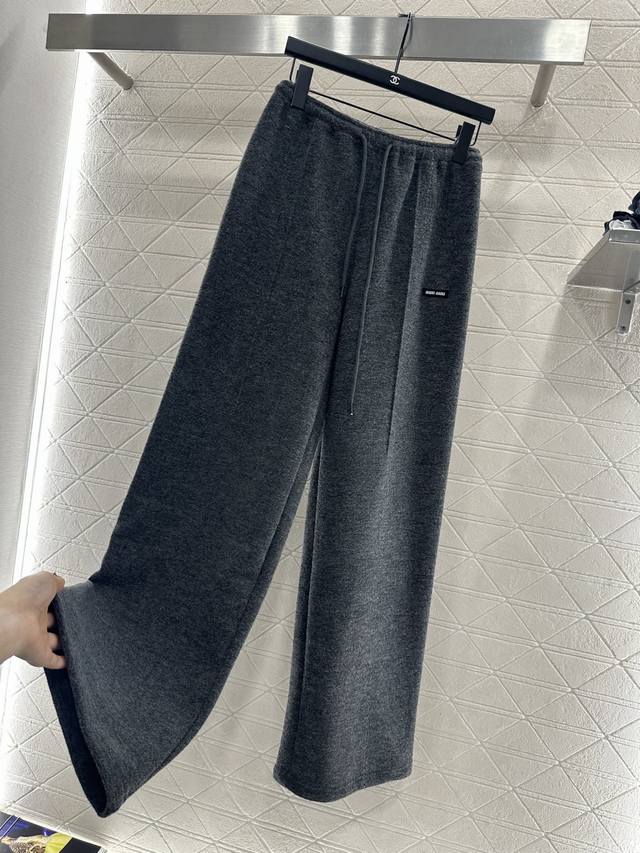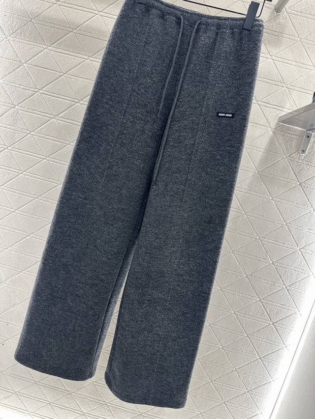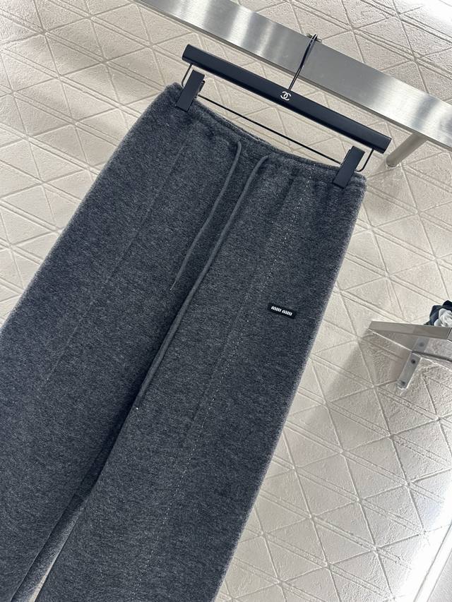 Miumi*2025 New Arrival Ddd Drawstring Wide-Leg Trousers Ddd Custom Yb Imported wool blend material, the fabric is sturdy, comfortable and warm to wear, suitable for autumn and winter. High-waisted drawstring wide-leg trousers with vertical dotted lines created using embroidery, symmetrically distributed along the center axis of both legs, visually straightening the legs. Full of details, the letter logo on the waistband creates a relaxed and stylish look, instantly elevating the brand's style. Effortlessly versatile trousers for the changing seasons, perfect for vacations, dates, and everyday wear. Custom fabric and accessories, look for the high-quality version. 3 colors: white, gray, navy blue DDD