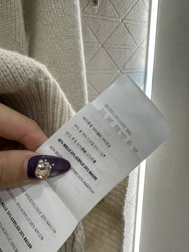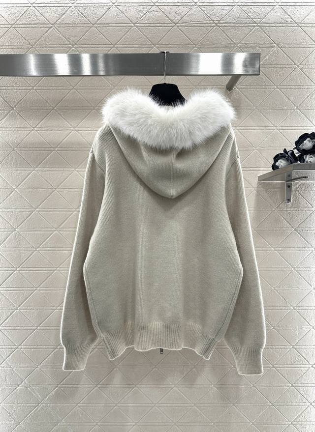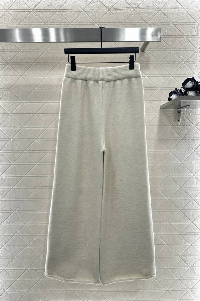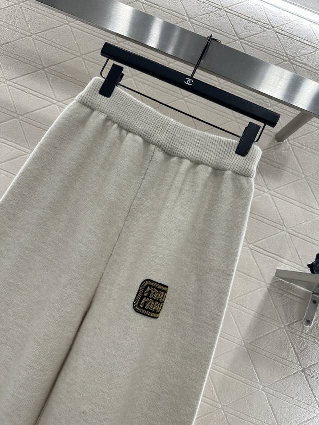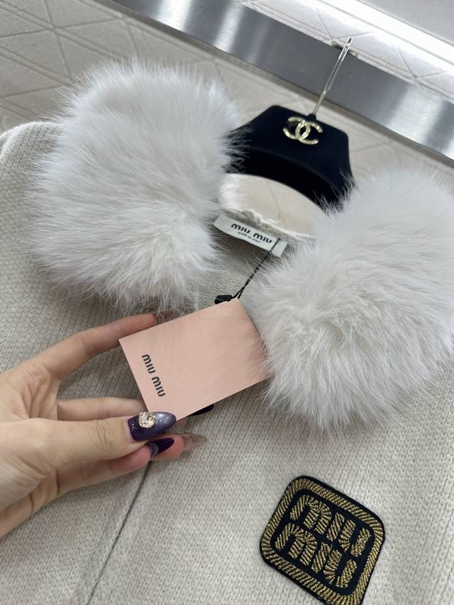 Miumi*2025 New Arrival DDD Fur Collar Zipper Knit Cardigan and Pants Set DDD Made with custom Yb wool yarn, comfortable and soft, stylish and fashionable. The plush lapel zip-up cardigan has a visible amount of fur, providing warmth and cold resistance. The wheat-ear-shaped letter logo on the chest highlights its style. Paired with matching wide-leg trousers, the elastic waistband flatters the abdomen, and the logo echoes the design. Comfortable and stylish, this set is suitable for everyday wear or casual outings, offering a relaxed and fashionable look. Custom fabrics and accessories, high-quality version, available in dark gray and off-white. Set DDD