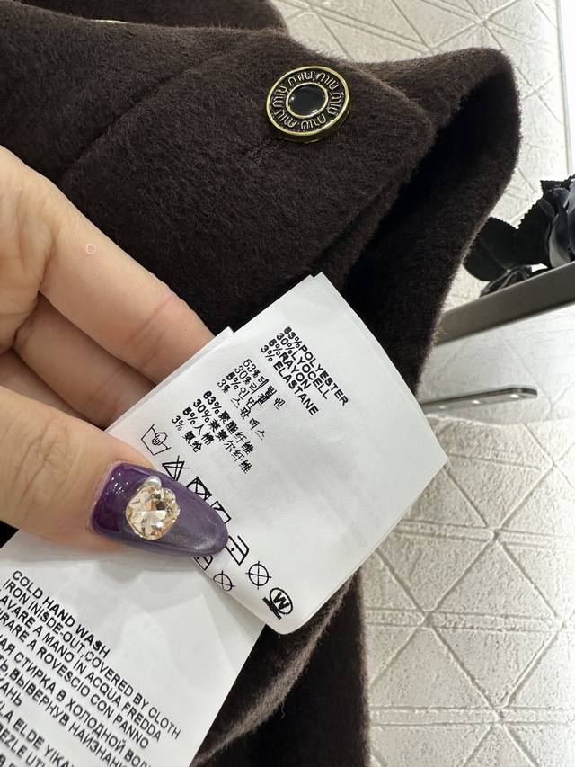 Miumi*2025 New Arrival DDD Stand Collar Jacket and Pants Set DDD Custom-made imported rayon material, treated with a plush texture, soft and delicate, with superior warmth. The short stand collar jacket features a distressed double-breasted button design, echoing the cuff buckles, showcasing the brand's style. Paired with matching straight-leg trousers, the draping texture and three-dimensional tailoring create a stylish look. The set is simple yet fashionable, easily suitable for daily commutes. Custom-made fabrics and accessories, look for high-quality versions. Set DDD