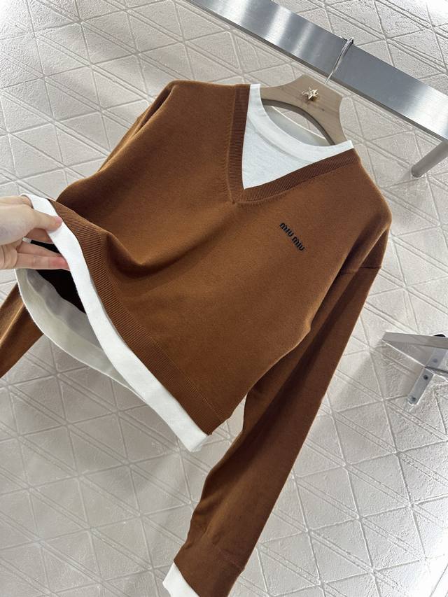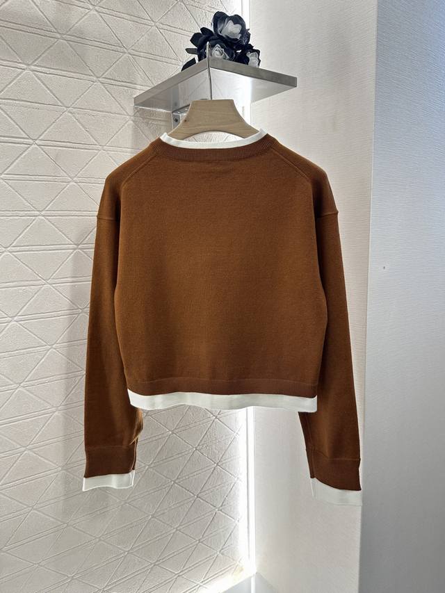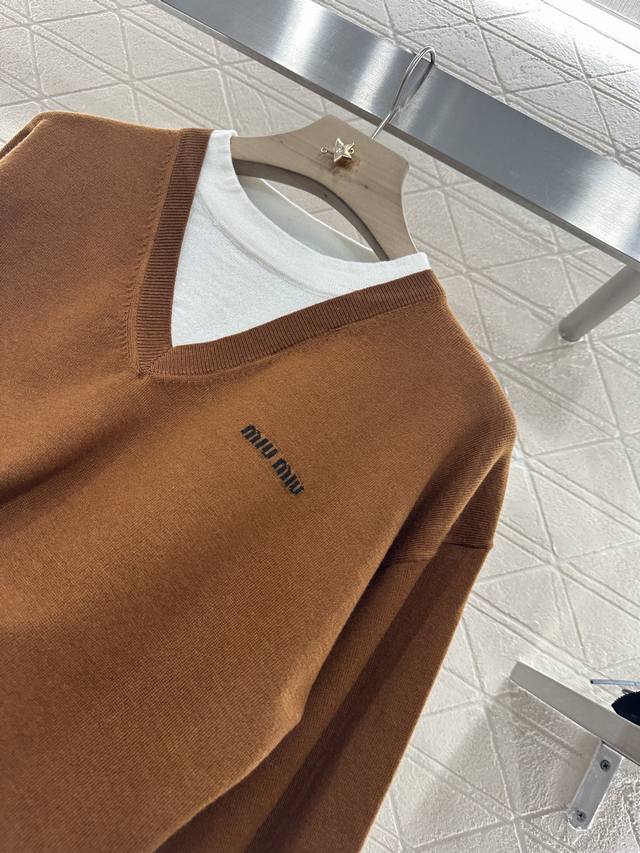 Customized Yb wool yarn weaving elasticity comfortable breathable and easy to wear Knitted long sleeves tailoring beautifies the head-shoulder ratio and makes you look thinner. The inner circle and the outer V contrast color form a fake two-piece layering effect. The letter logo decoration on the chest is exposed from the neckline, cuffs and hem. The retro style is strong. The loose short version is inclusive of the body style. The playful and age-reducing visual effect is richer. You can easily control the Miu style to reduce your age and be fashionable. Customized surface and accessories, look for the high version in 3 colors