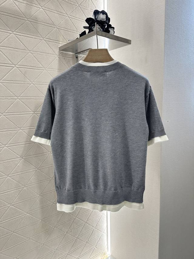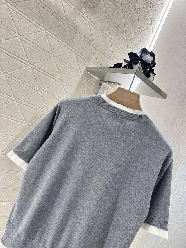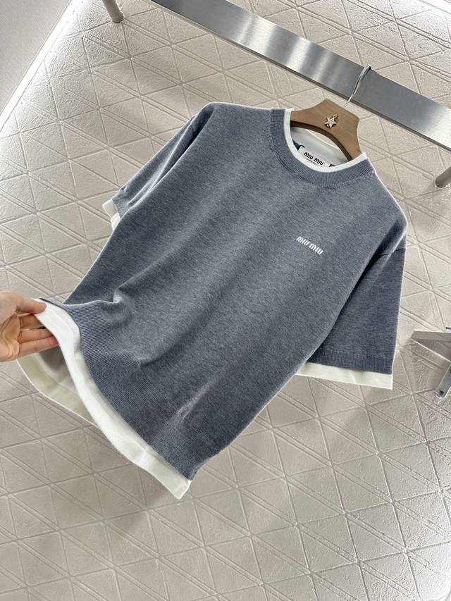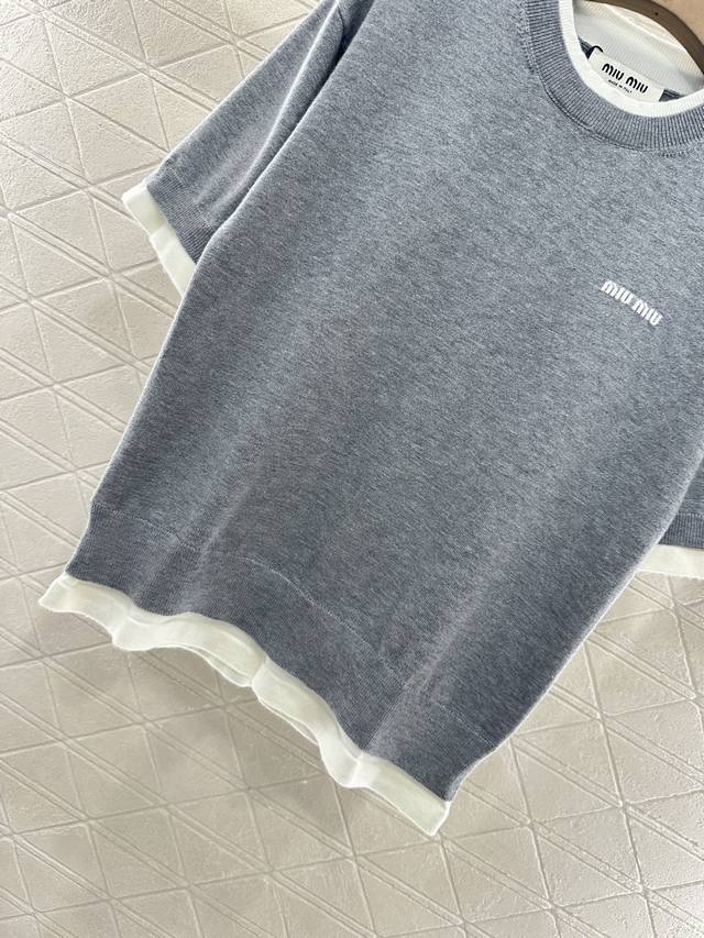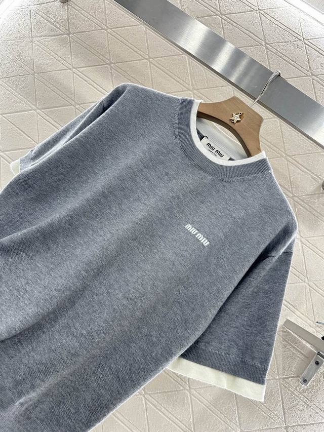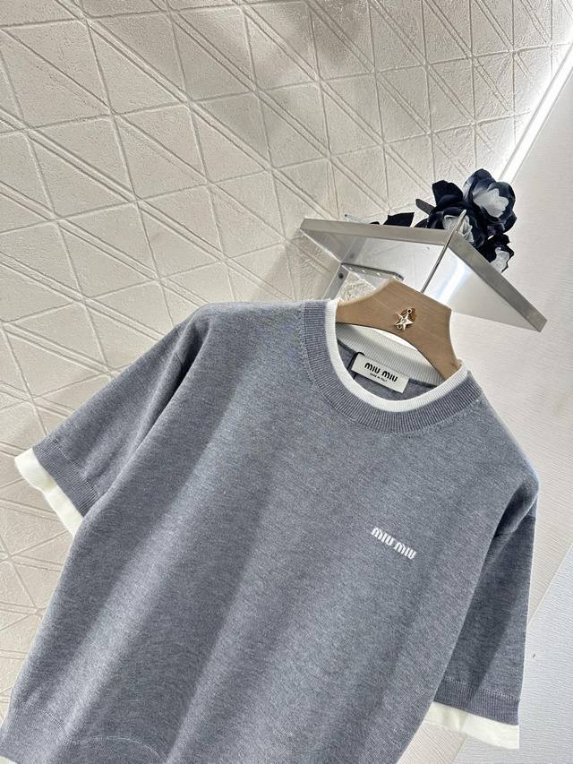 Miumi*2025 New arrivals Contrast color knitted short sleeves Customized Yb wool