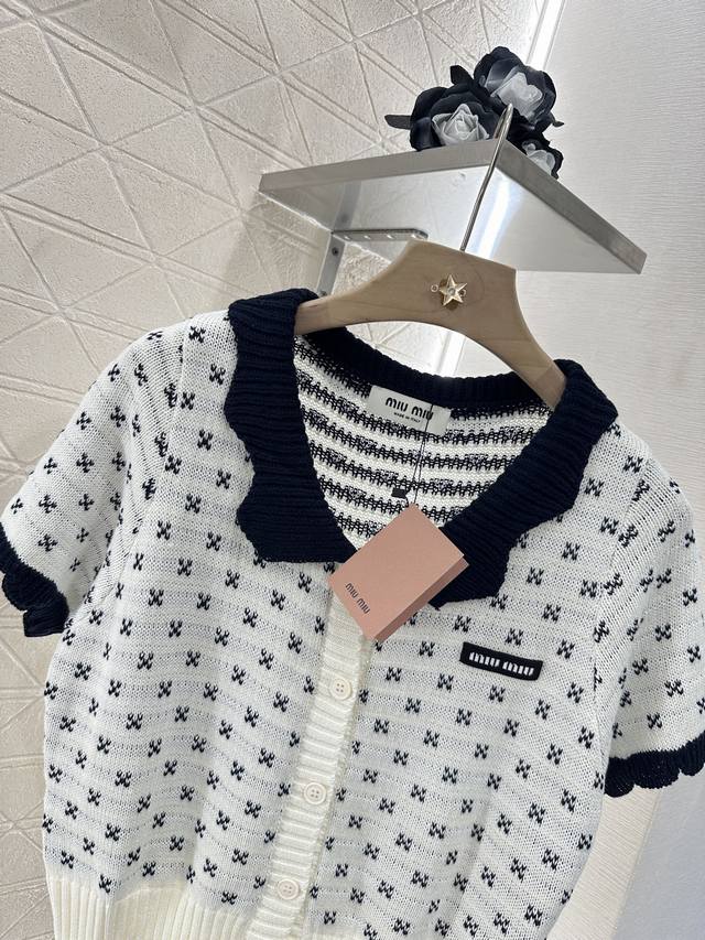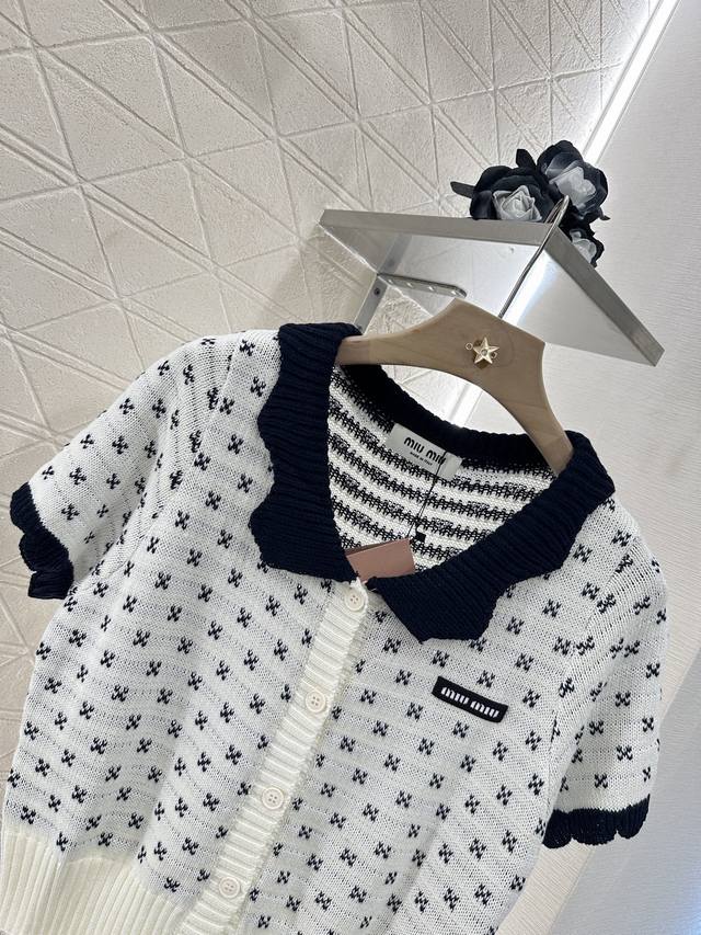 Miumi*2025 New arrivals Contrast color knitted short-sleeved cardigan Customized