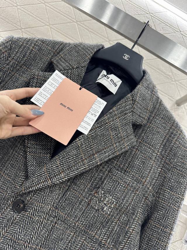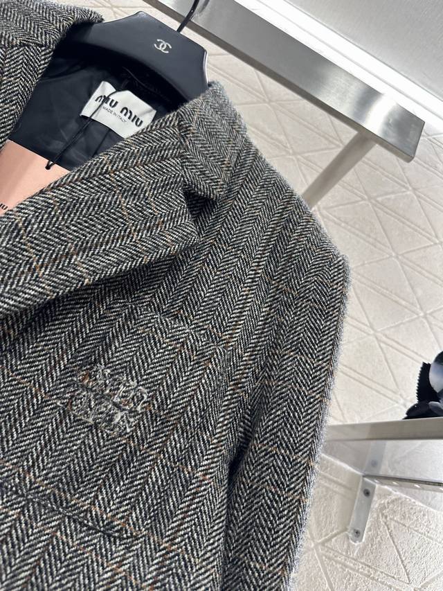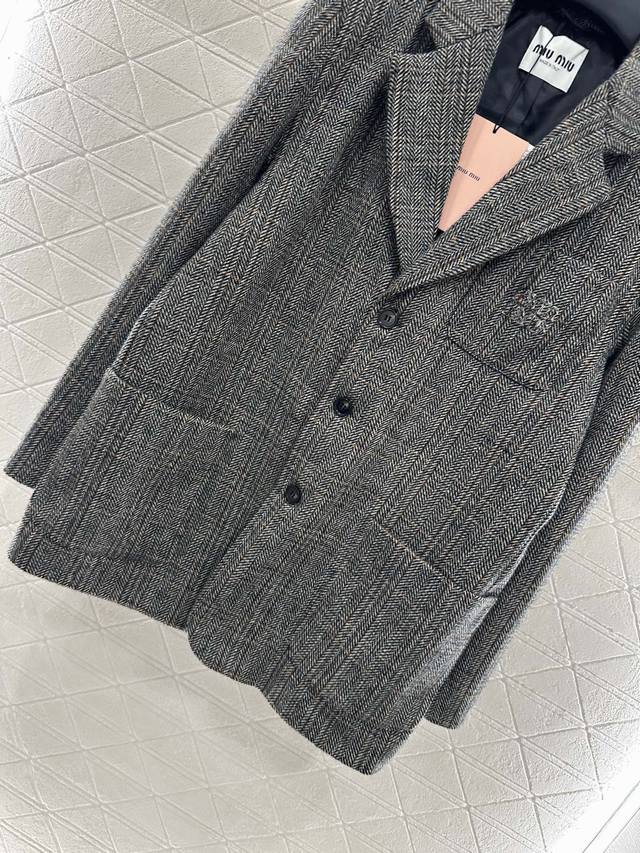 Miumi*2025 New Arrivals Lapel Plaid Pocket Suit Jacket Custom Yb imported worste