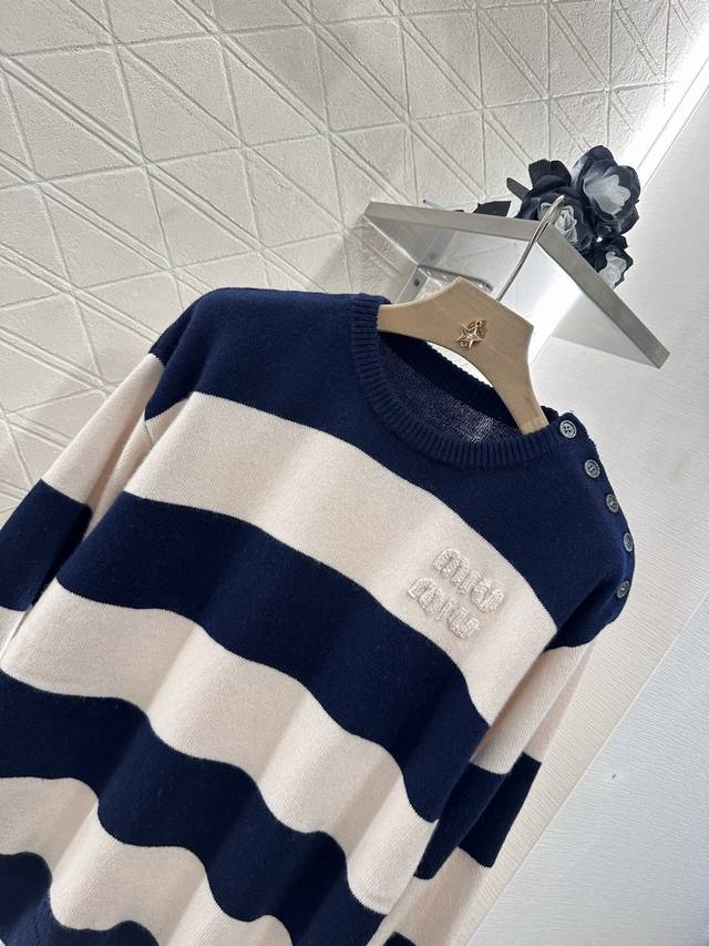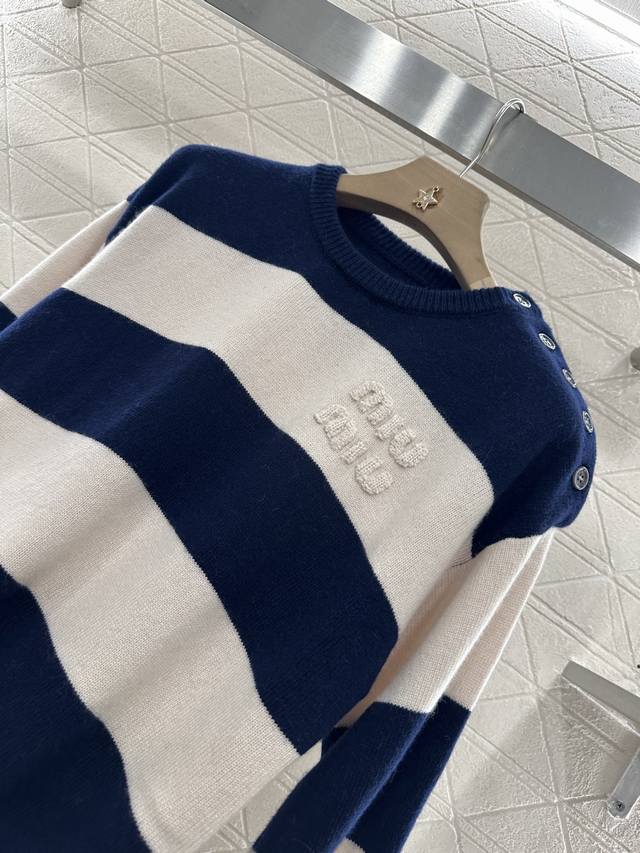Miumi*2025 New arrivals Letter striped round neck sweater Customized Yb wool yar