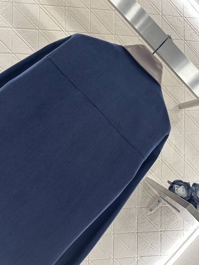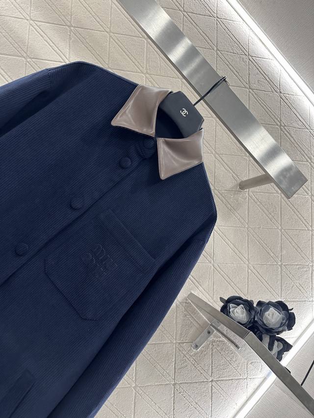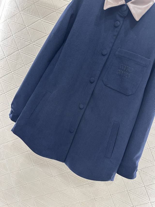 custom Yb corduroy cotton material with a delicate texture and clear grain Retro navy blue suitable for autumn and winter wear Lapel silhouette shirt version can be worn as a jacket All-over vertical ribbed texture with chest pocket letter embroidery Contrast stitching leather collar highlights the details The texture is more relaxed and simple, presenting a casual and free style . Wear it in a fashionable and stylish way Customized fabrics and accessories Look for the high version