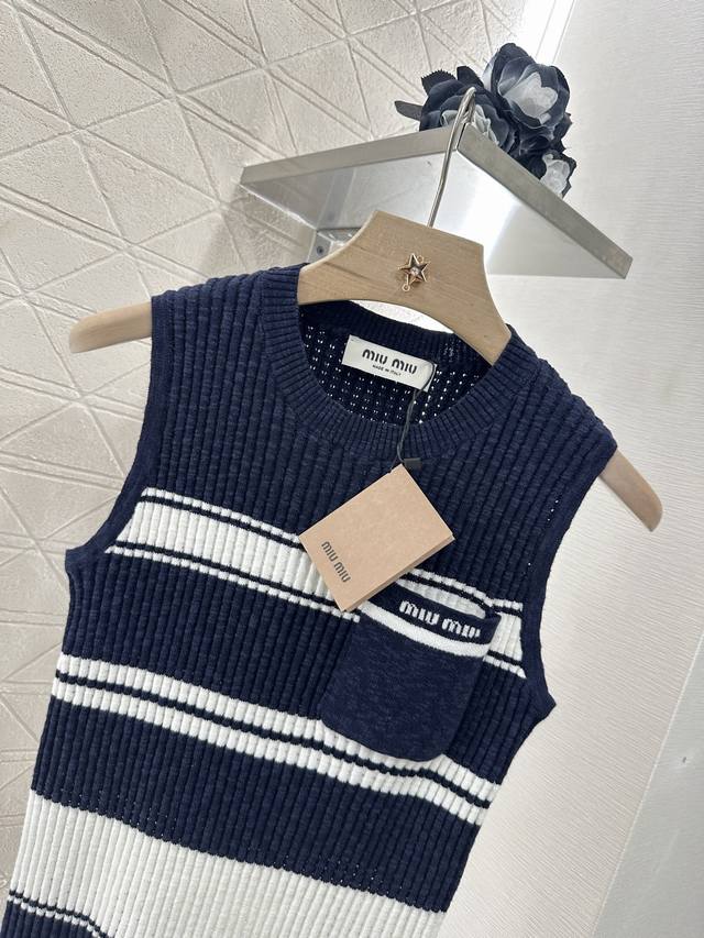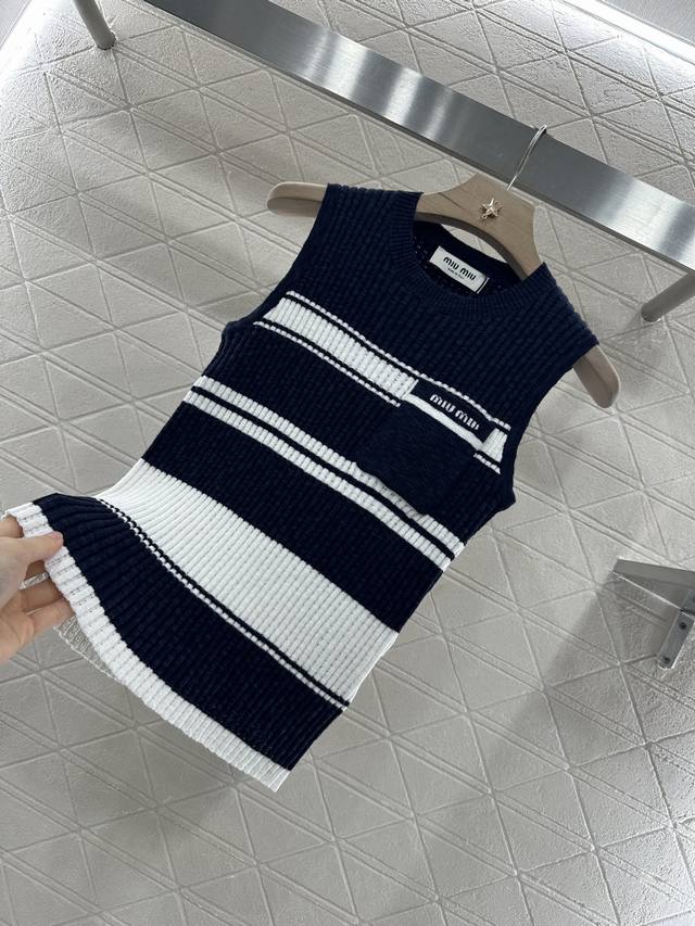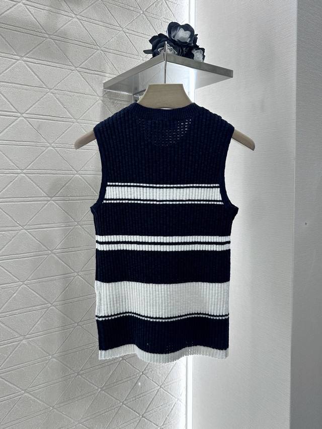 Customized Yb wool yarn weaving, comfortable and breathable Round neck vest tailoring Chest pockets decorated with iconic letter logo pattern highlight the brand tone Cool and stylish with large body stripes of different thicknesses Irregular interweaving design makes simple styles more individual Elasticity makes it more refined Shows relaxed tone Light luxury and fashionable temperament Can be worn alone or layered Fashionable in all seasons First choice for customized surface and accessories Look for high version 2 colors