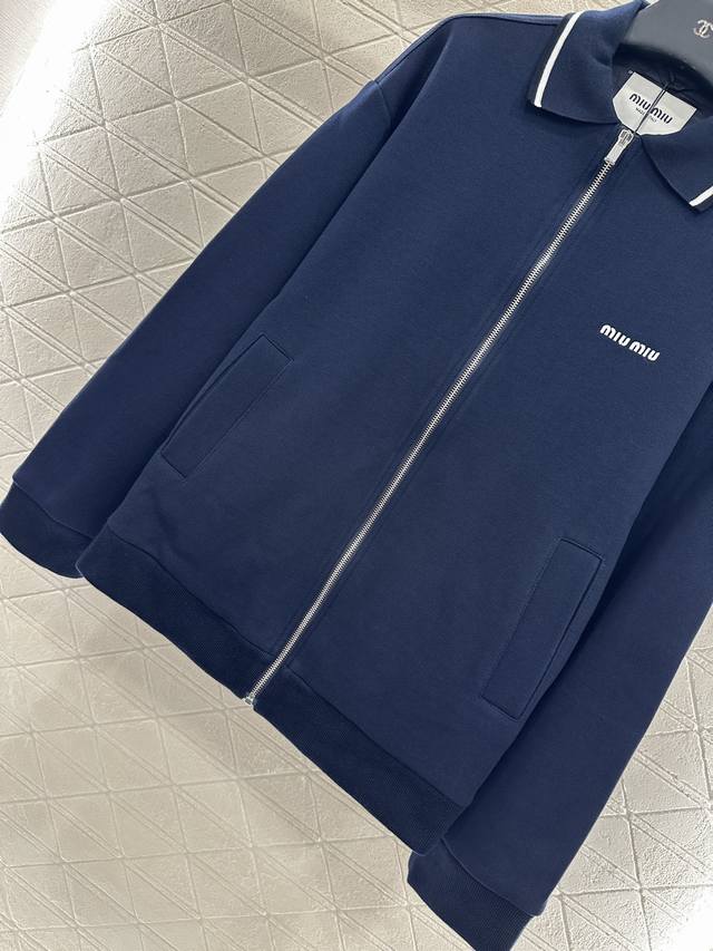 Miumi*2025 New Arrivals: Zippered Lapel Casual Jacket. Made of custom Yb twill c