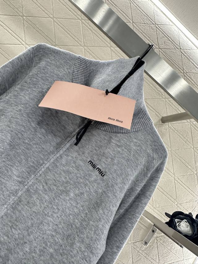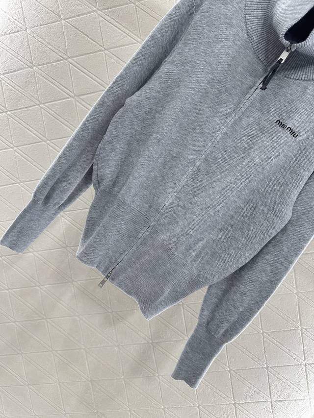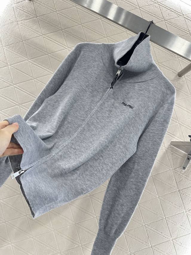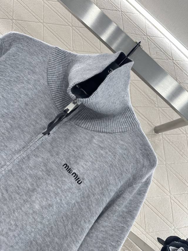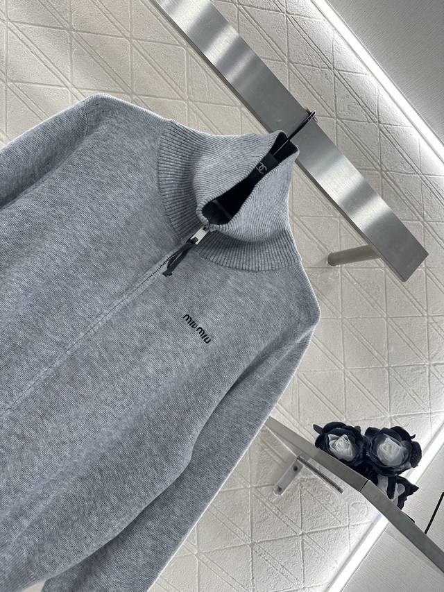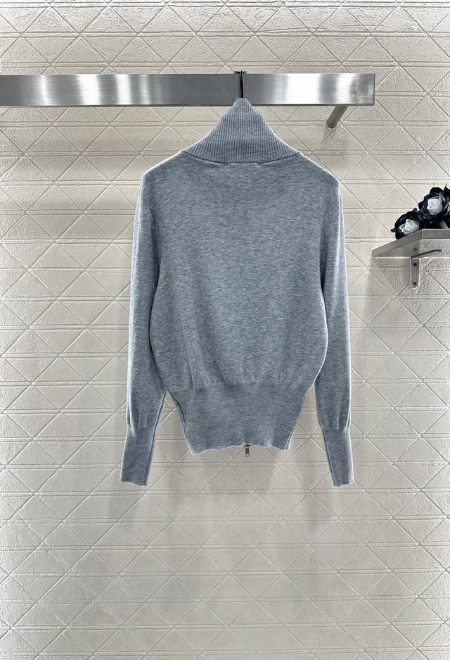 Zippered Lapel Knit Top. Custom-woven from Yb wool yarn for a premium, comfortable, and soft feel. The stand-up lapel cardigan features a unique contrasting collar detail. Regular zipper design and hemmed hem accentuate the texture with ribbed vertical ribs. The slim fit creates a stylish and relaxed look. The chest logo accentuates the premium aesthetic and adds to the texture. The regular fit is versatile and adaptable to any body type and age. Custom-made fabrics and accessories are available in three colors.