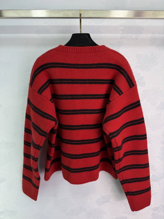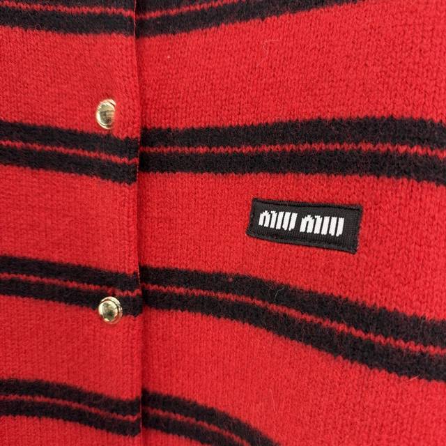 Miumi*25 Early Autumn new knitted round neck cardigan classic color stripe patch