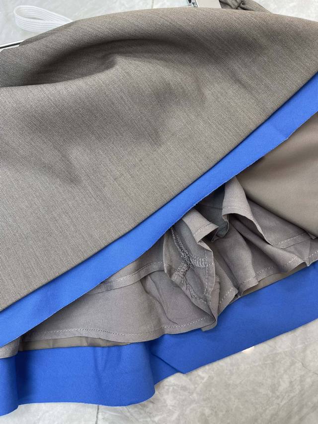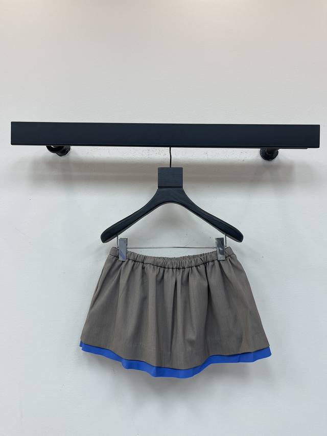 Miumi*25 Early Fall new gabardine mini skirt. Miu's signature fabric, gabardine, reinterprets the silhouette of this mini skirt, adding periwinkle poplin details and a sporty drawstring for a modern, experimental look. Combining exquisite craftsmanship with innovative experimentation, the elastic waistband features a drawstring detail, while blue hem accents add a touch of design. The skirt features an A-line silhouette and a side monogram logo. Sml Aa.