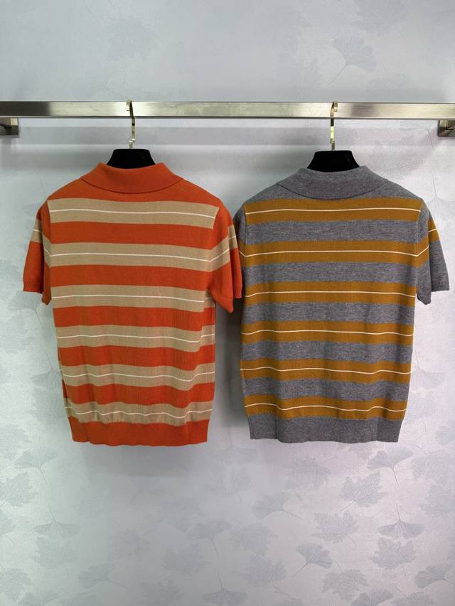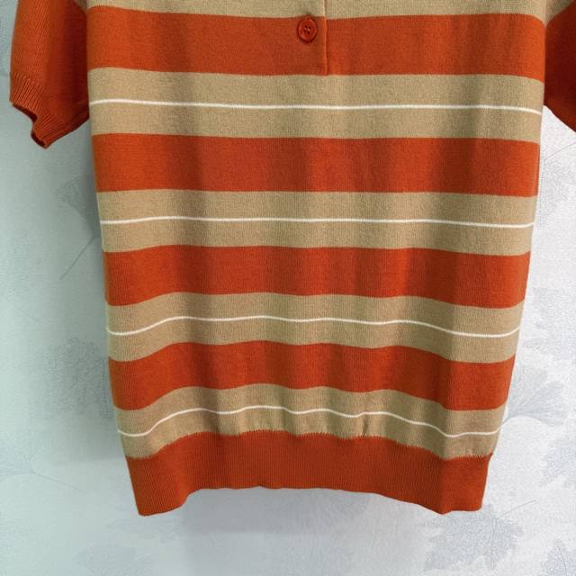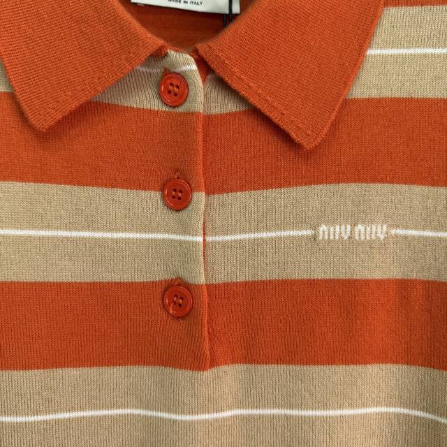 Miumi*25 Early Fall new lapel polo collar knit short-sleeve, the patchwork color is very white! Imported machine jacquard lettering is full of texture. Suitable for this year's most popular layering style, fashionable and super stylish! Single color Sml. T226B.