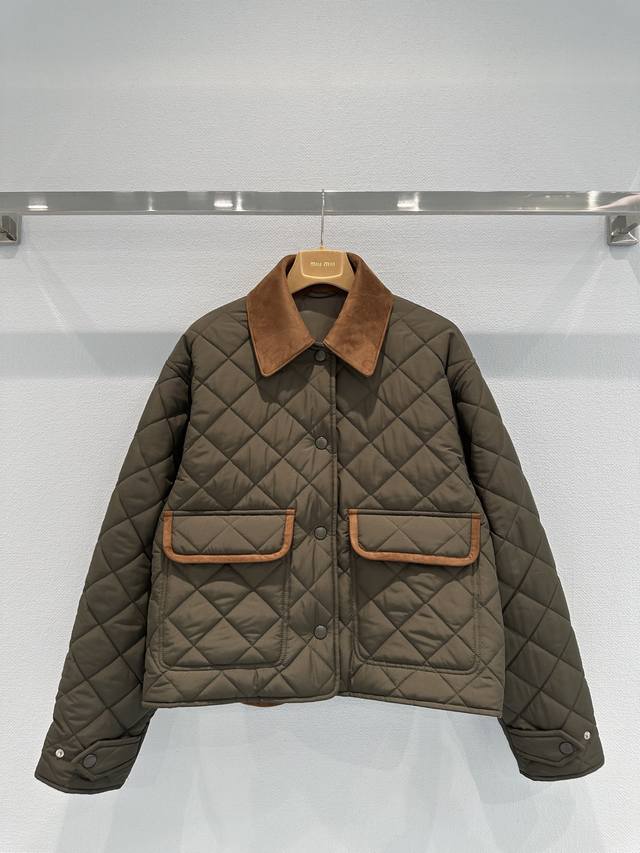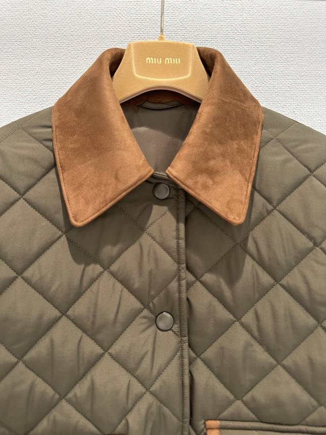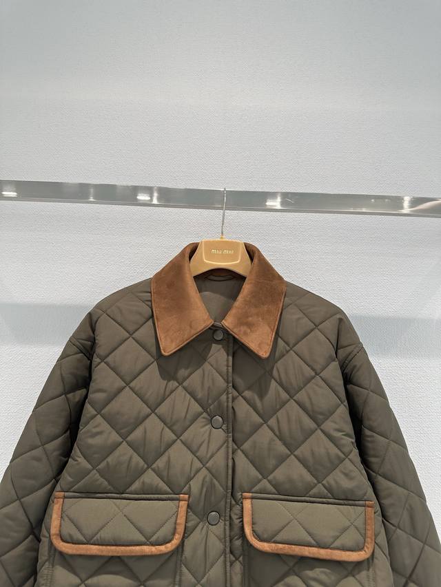 Miumi*25 New Contrast Color Lapel Short Cotton Jacket Classic small lapel + cont