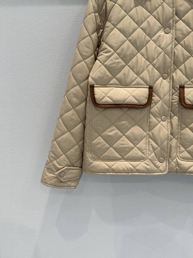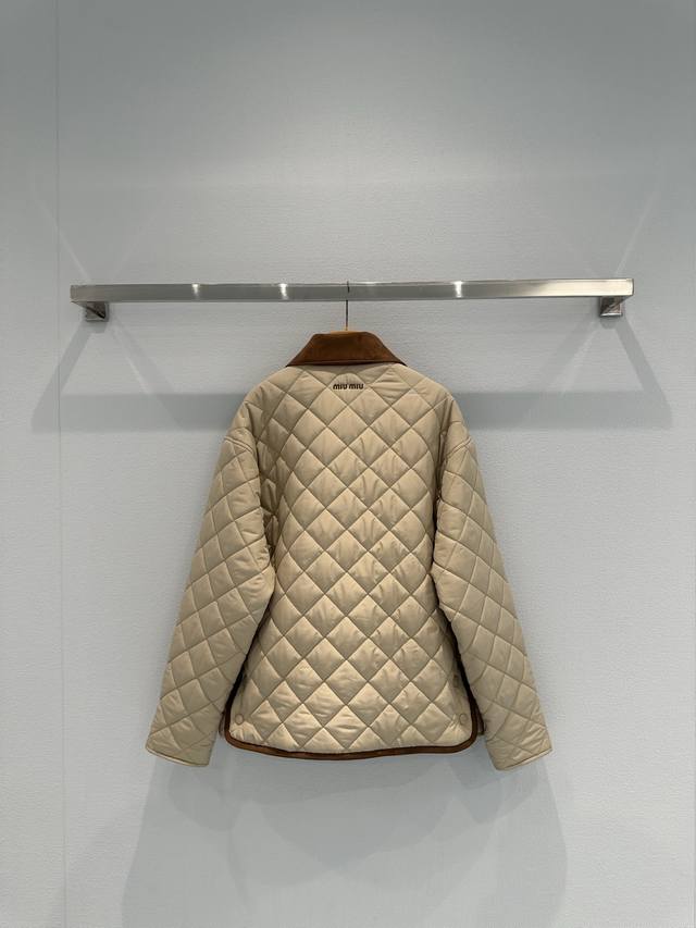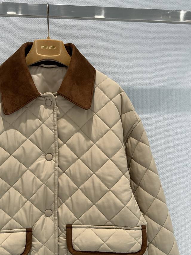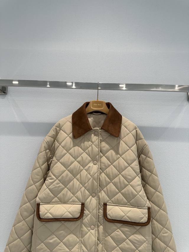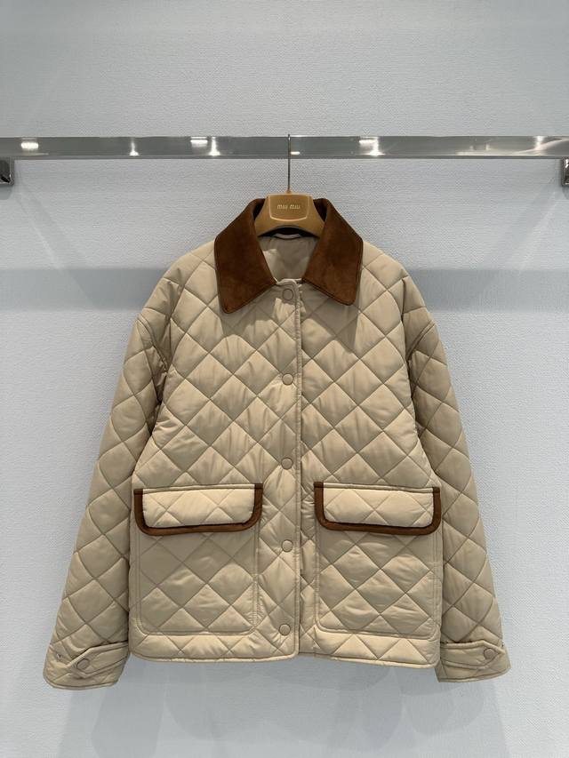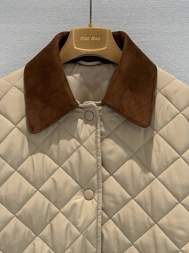 Miumi*25 New suede collar splicing diamond quilted jacket. The splicing design o