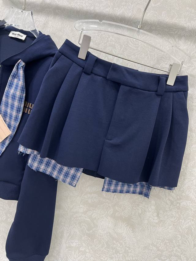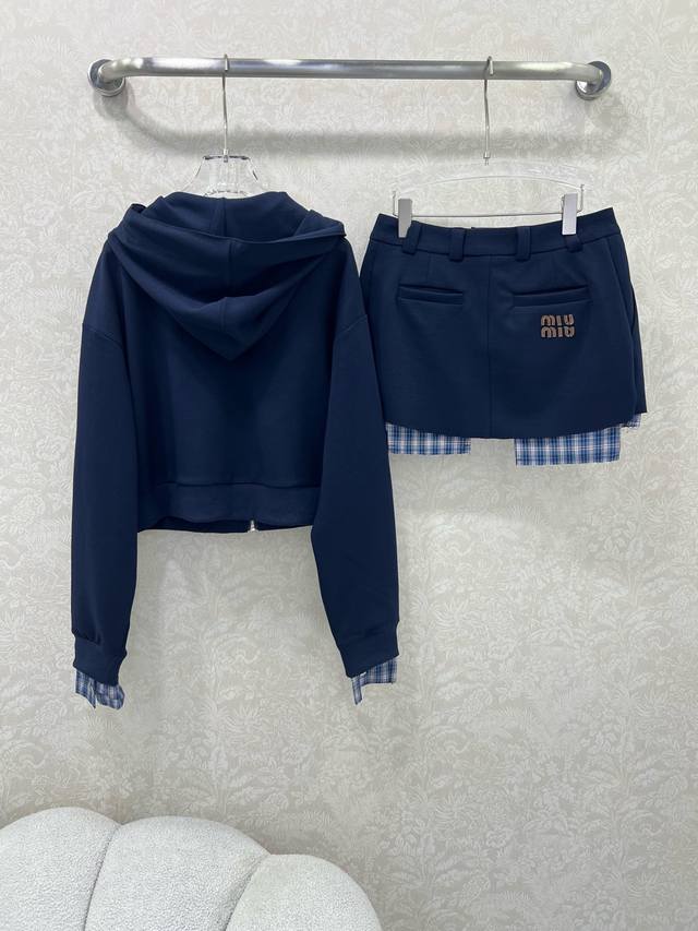 Miumi*25's new stylish faux two-piece color-blocked sweatshirt set! Retro-inspired, sweet, and youthful, this sporty hooded jacket paired with a miniskirt is a truly stunning outfit! Custom-made imported cotton fabric offers a stunning texture. Whether sweet or savory, this youthful, youthful style is versatile and suitable for everyone! Quality craftsmanship is reflected in the details. 2 colors and 3 sizes Smlb.
