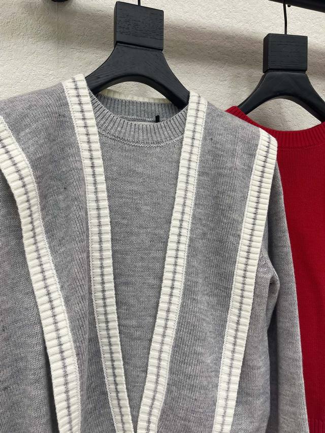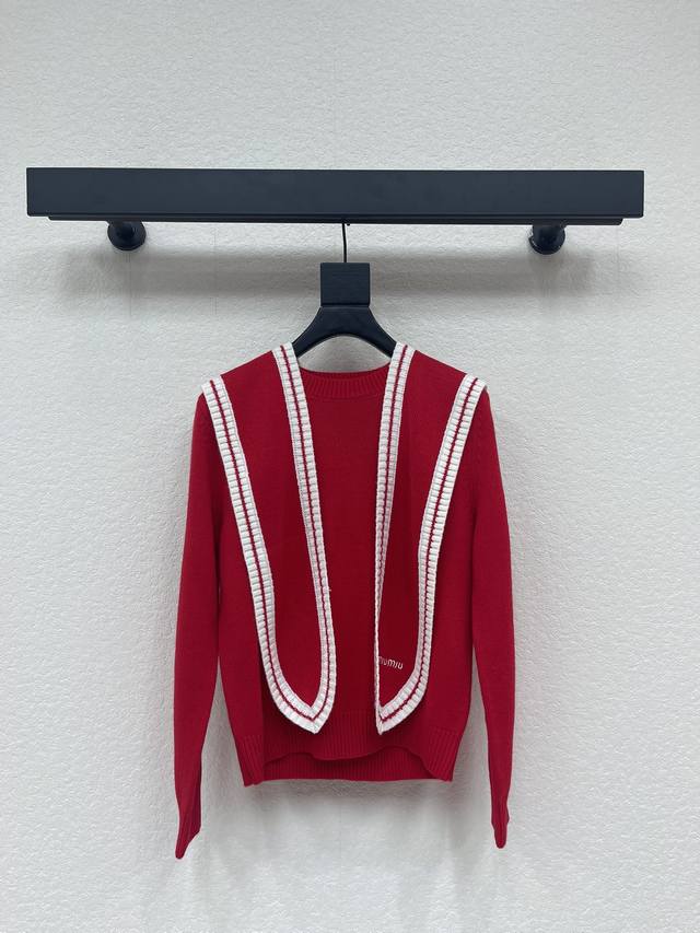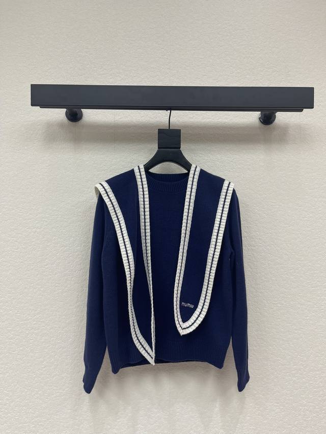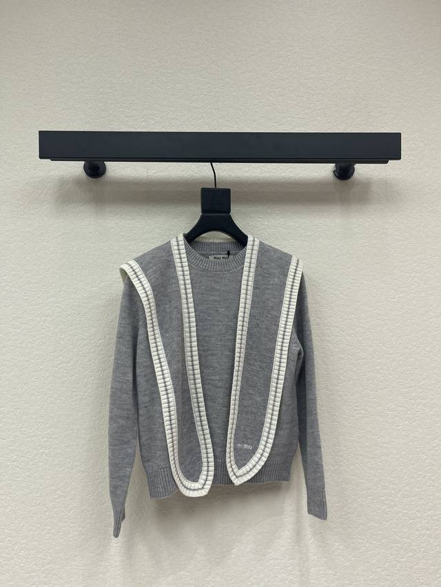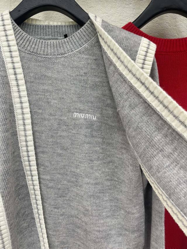 Miumi*26 Early Spring New Two-Piece Shawl Knit Pullover Long-Sleeve Sweater! Made with custom wool yarn, soft and skin-friendly with a premium feel. The round neck and long sleeves offer a stylish and casual cut. The letter logo on the chest showcases the brand's style. Ribbed edges add a touch of vibrancy. An essential for autumn and winter outfits, this preppy style guide is relaxed and chic! Sml Aa. DDD