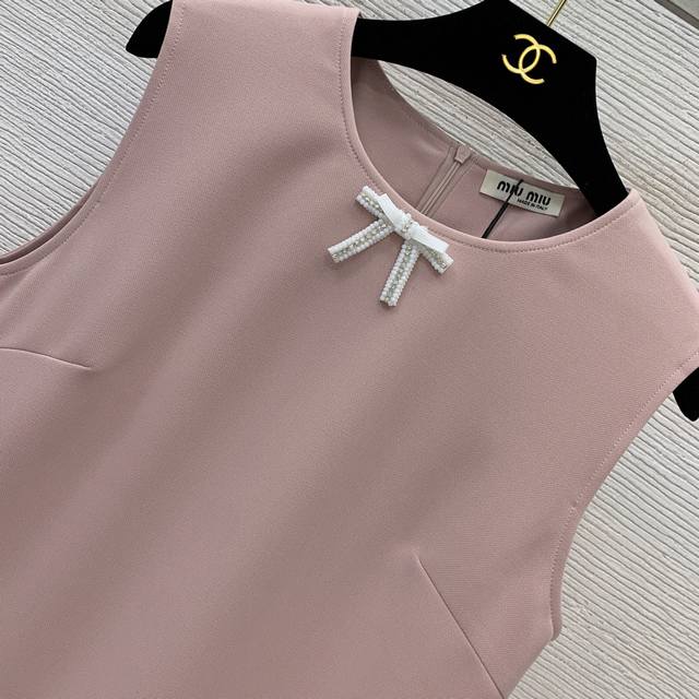 Miumi*Miumi's new 25th year early autumn high-end custom bow beaded lace decoration slimming sleeveless vest dress! Pink, black, M size: bust 92, skirt length 88