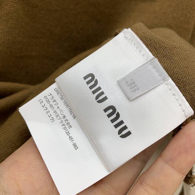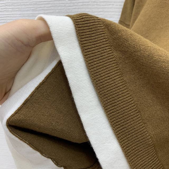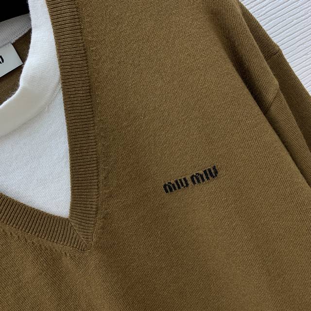 Miumi*Miumi's new high-end custom 100% wool yarn fabric, chest logo logo, contrasting color stitching, fake two-piece design, fashionable and youthful short long-sleeved sweater top! Brown, 36, 38, 40 Size 38: Shoulder Width 46, Chest 90, Sleeve Length 51, Length 45