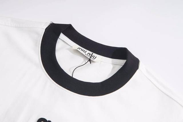 Miumiu color-blocked short-sleeves, normal version, unisex style! The highest version on the entire network! Almost identical! Short color-blocked short-sleeves, purchased and produced from Zp5220, exactly the same version as the original, no cuts! There are many fake versions on the market! The fake part is the embroidery on the chest. We use the same production process as the original. First, the original fabric is compounded as the material, then the mold is opened, and then it is cut into several small pieces. Then, the pieces are manually positioned and embroidered. The original-like process is very time-consuming and labor-intensive! It is not the 99% embroidery on the cloth that is embroidered directly on the cloth on the market. That kind of embroidery is fake at a glance! Size Xs SML