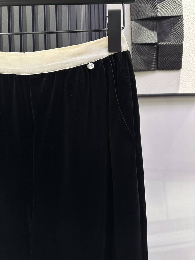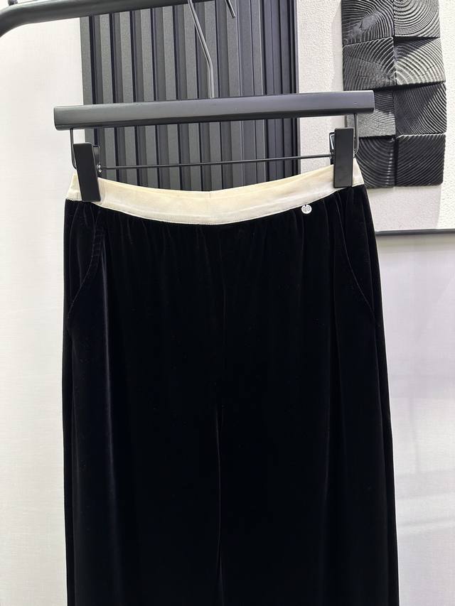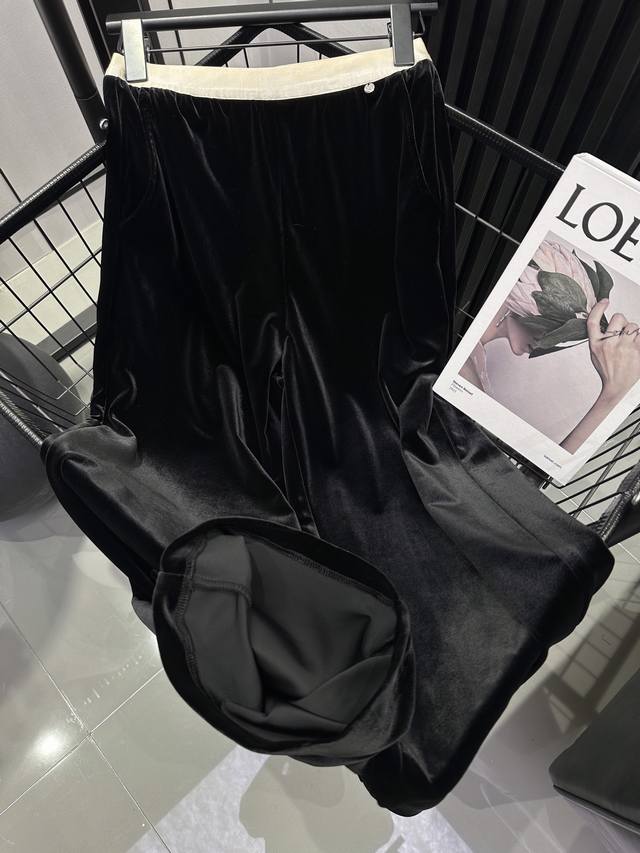 Miumiu - Early Autumn New Minimalist Velvet Wide-Leg Pants with Butterfly Tag Embellishment. High-quality fabric with a natural drape, slimming and stylish. Available in single color. Sizes: Smlxl,