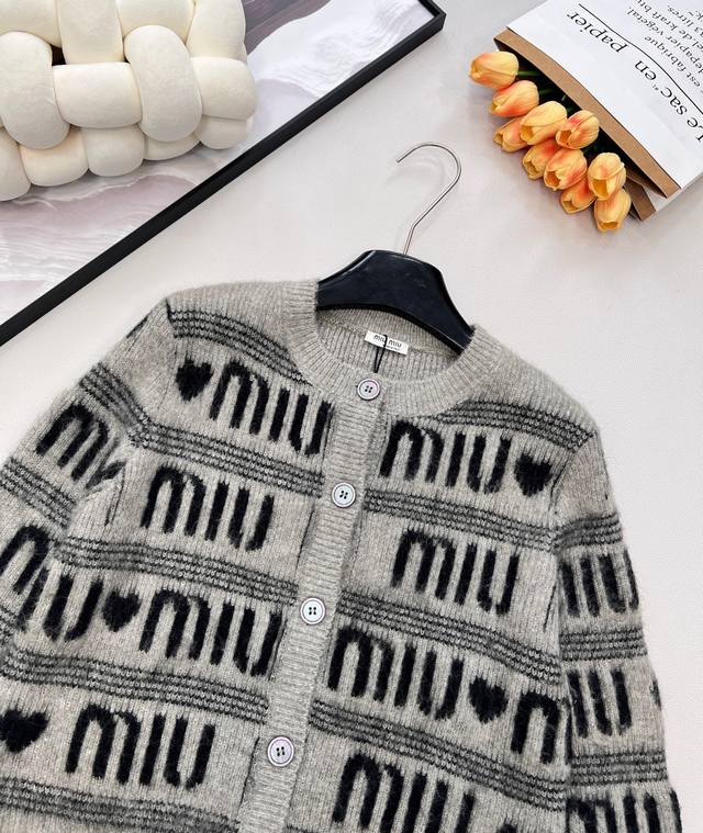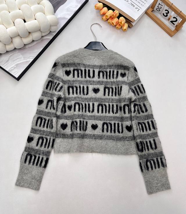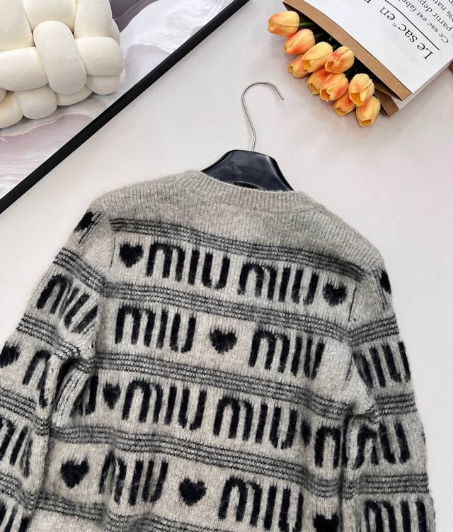 Miumiu Jacquard All-Letter Heart Wool Crew Neck Knit Sweater, stylish and warm at the same time! DDD Keeps you sweet and cute even in cold weather~ Made with rich, finely brushed mohair, a cloud-like feel~ The classic black and gray monogram is eye-catching and not monotonous! Relaxed and casual yet full of style! DDD Exudes an exceptionally gentle and irresistible charm! DDD Wearing it gives you the look of a noble princess! A sophisticated and trendy outfit that simplifies complexity, combining style and quality~ Pairs perfectly with jeans, skirts, or shorts! DDD Miu really understands girls' hearts. When it comes to girlish charm, Miu is the place to go. It can even create a rich heiress look! DDD Effortlessly create a fashionable style, showcasing a gentle temperament, artistic, retro, elegant, and stylish. Clean, simple, fashionable, and practical all at once! Miu really understands women so well. All three labels are complete, bulk orders available! DDD Sizes S, M, L, DDD Code M