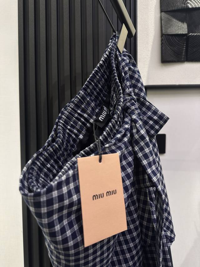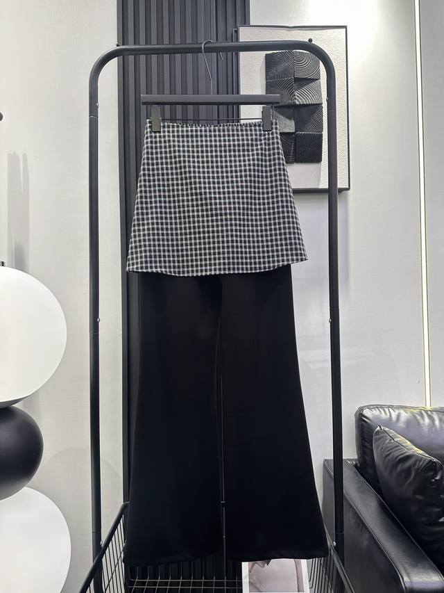 Miumiu- New plaid fart curtain two-piece flared pants high waist slim design upp