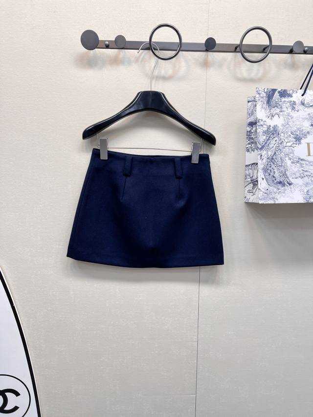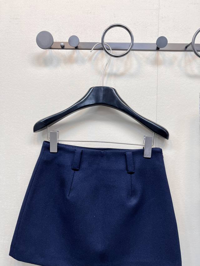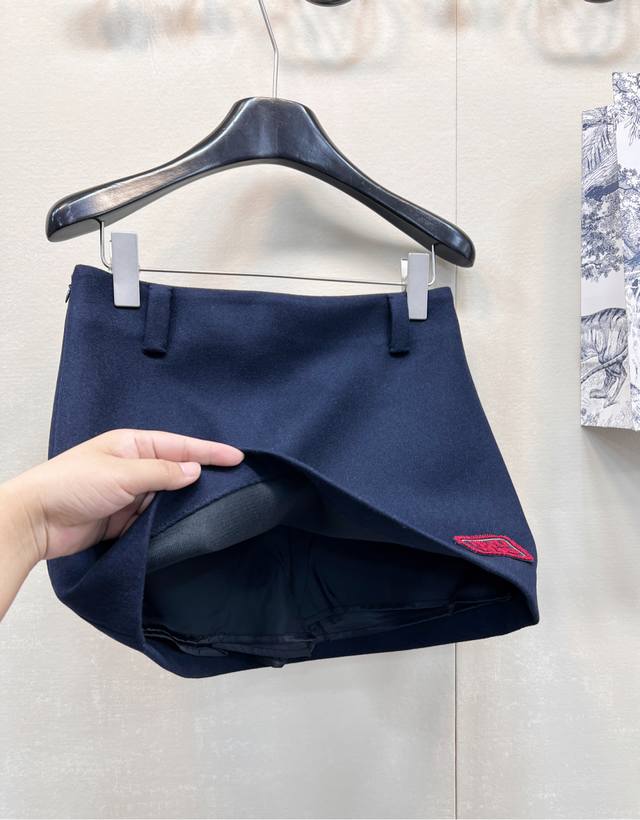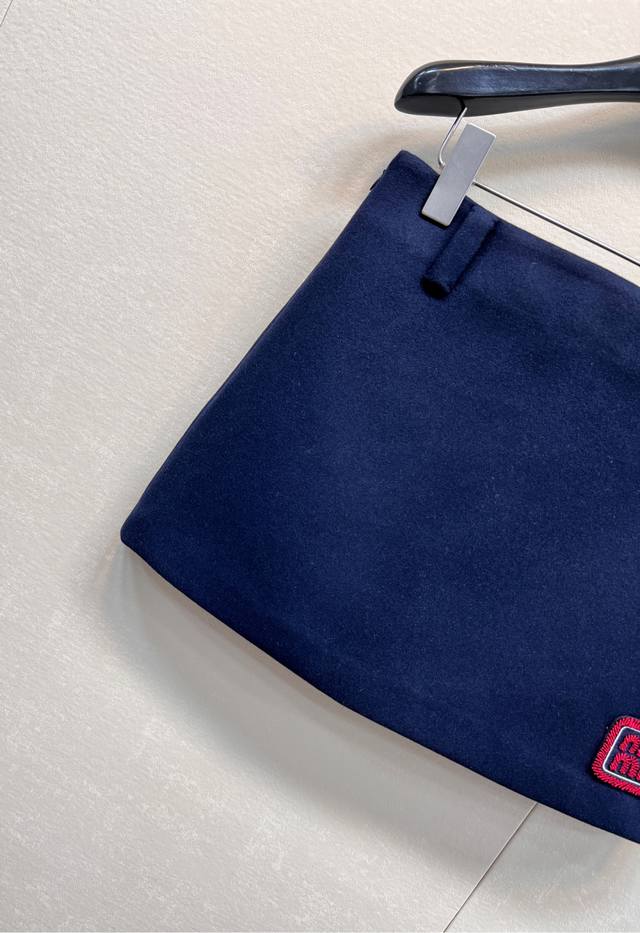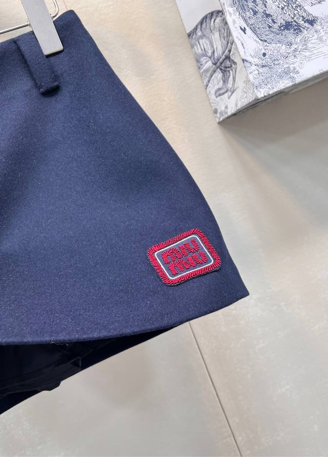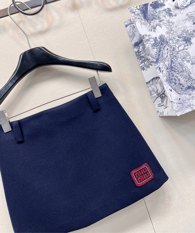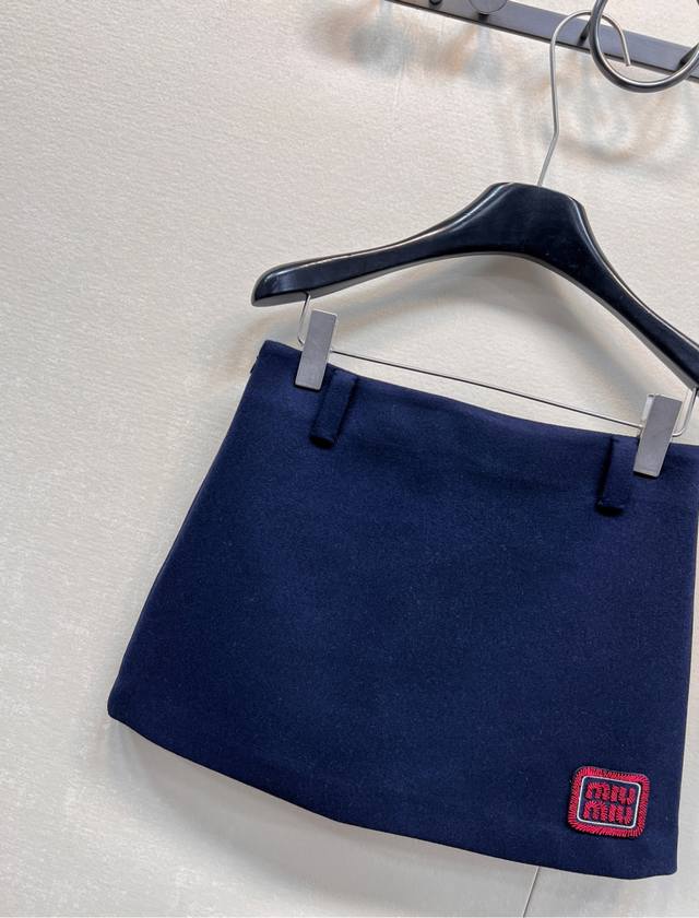 Miumiu Preppy Style Chic Red Embroidered Letter Midi Skirt. Made of high-quality sheep wool fabric, it's easy to care for, wrinkle-resistant, and has a crisp, structured look. The overall cut is flattering and very forgiving. The fabric is soft and smooth against the skin, and includes a lining to prevent any wardrobe malfunctions. It's highly recognizable and guaranteed to turn heads. A preppy, youthful, and versatile piece that suits everyone. Highly recommended! A high-street fashion statement piece that will make you stand out. The cut elongates your legs and makes you look incredibly slim. A youthful and stylish preppy item. The navy blue color is incredibly flattering and timeless. High-quality and sophisticated, it exudes an intellectual vibe. The contrasting navy blue base with the red logo is absolutely stunning. A perfect outfit! Sizes S, M, L. Skirt code M.