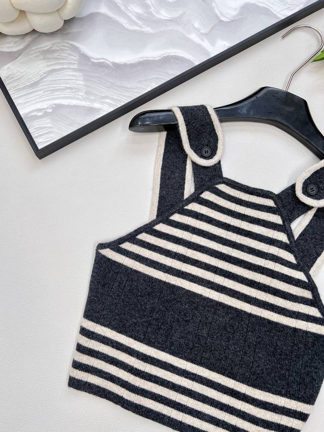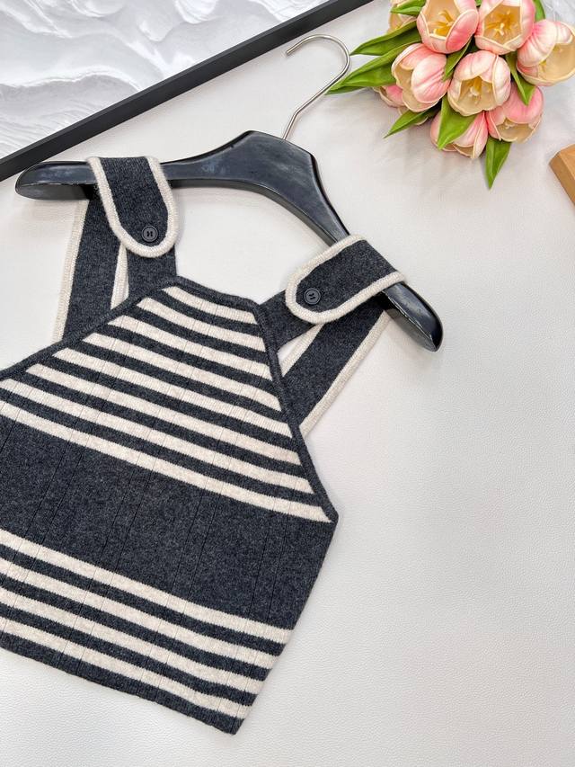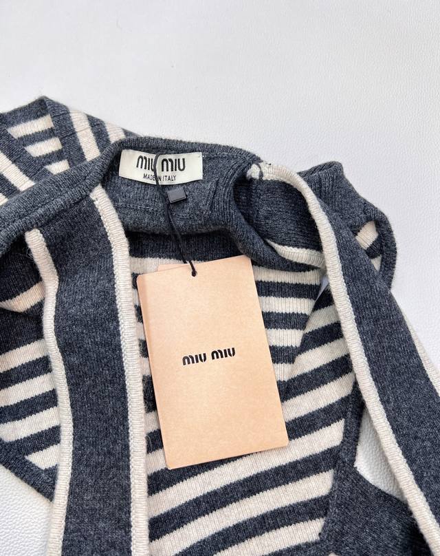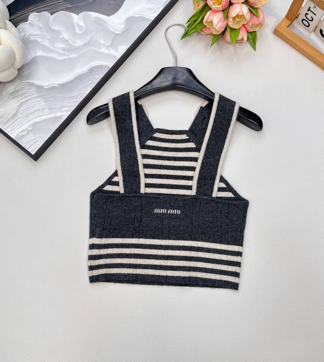 Miumiu2025 new striped knitted vest, customized Yb cashmere wool yarn weaving te