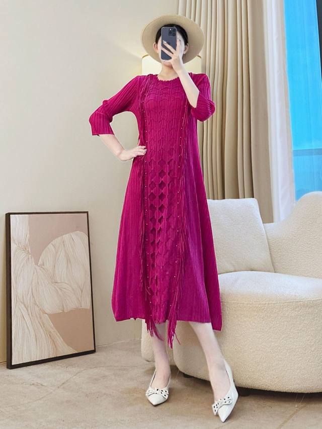 Miyake high-end green dress autumn new style temperament slim long skirt celebrity elegant temperament age-reducing mother dress one size