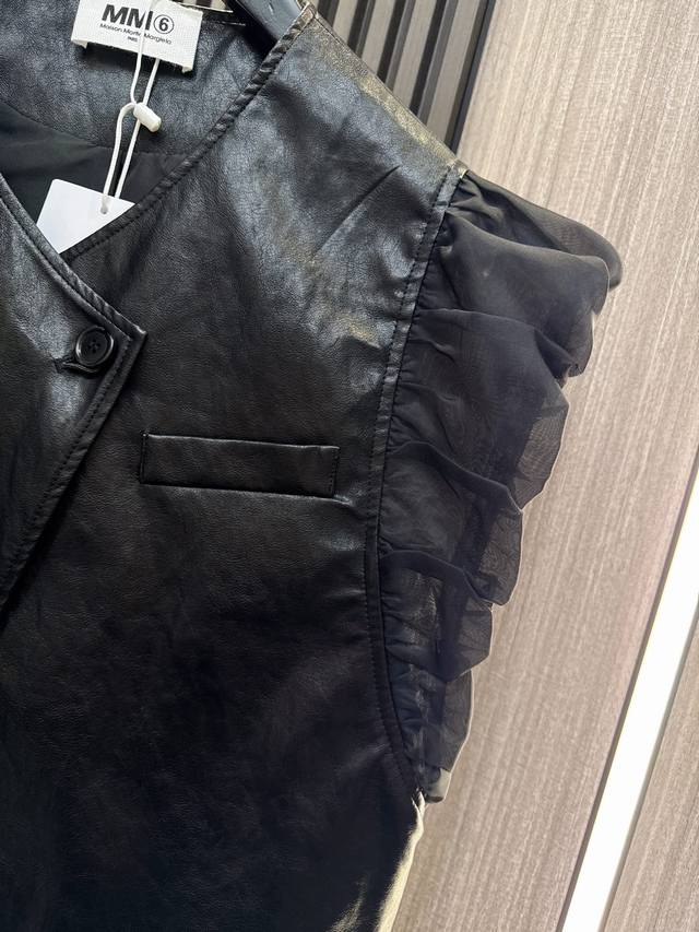 Mm6 2025 autumn and winter new style rebellious sweet cool! Pu leather vest with