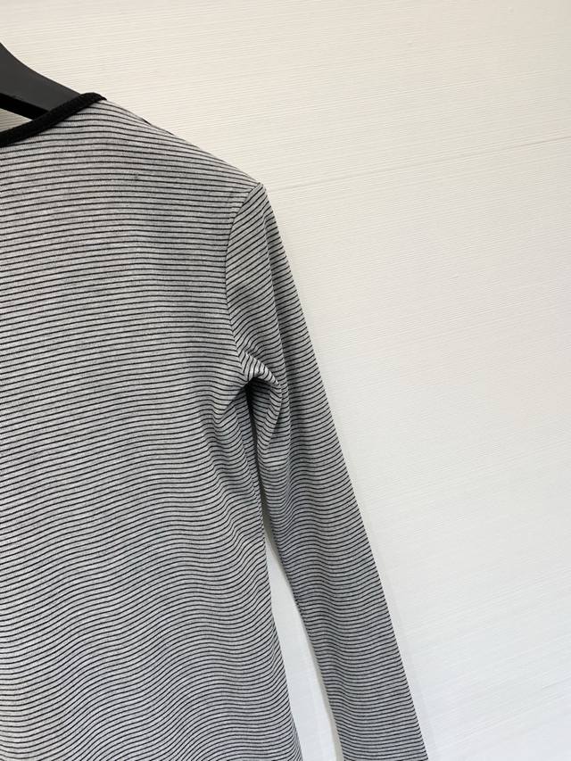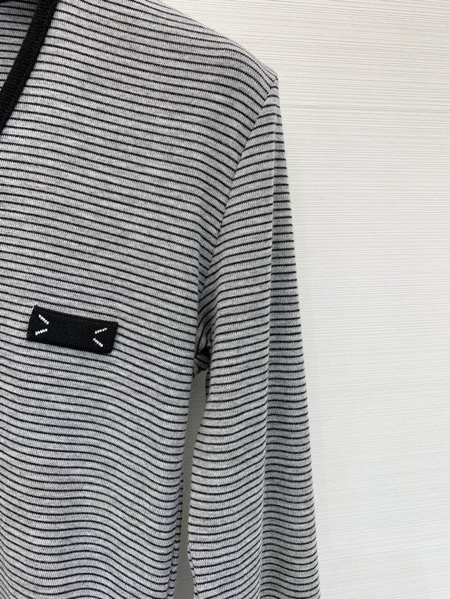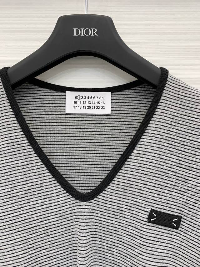 Mm6 2025 Autumn/ Winter New Color Block V-Neck Long-Sleeve T-Shirt Base Layer. The color-blocked black V-neck design is simple yet detailed. The soft knit fabric is comfortable against the skin. The four-dot logo on the chest is highly recognizable. It has a layered look and pairs well with high-waisted pants or skirts. It's easy to wear for both work and leisure, understated yet stylish. Available in three colors: S, M, L, D.