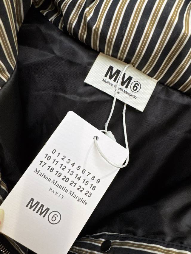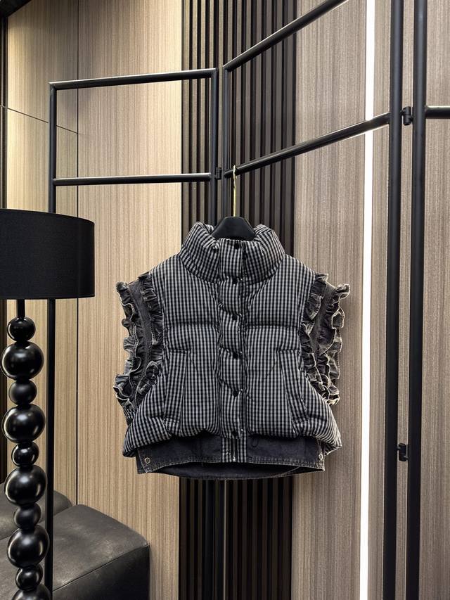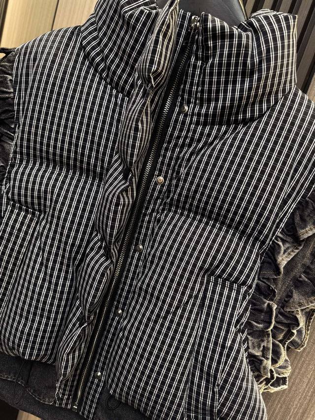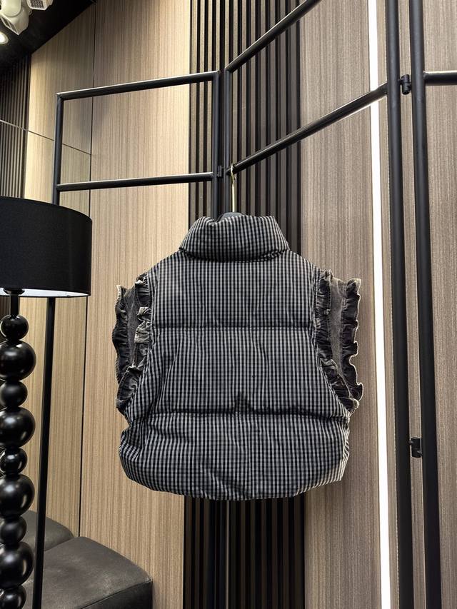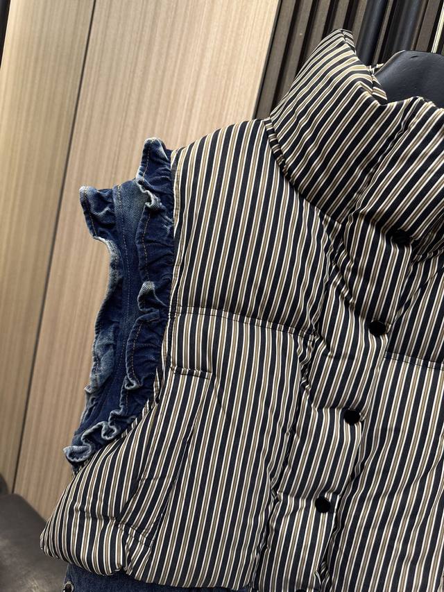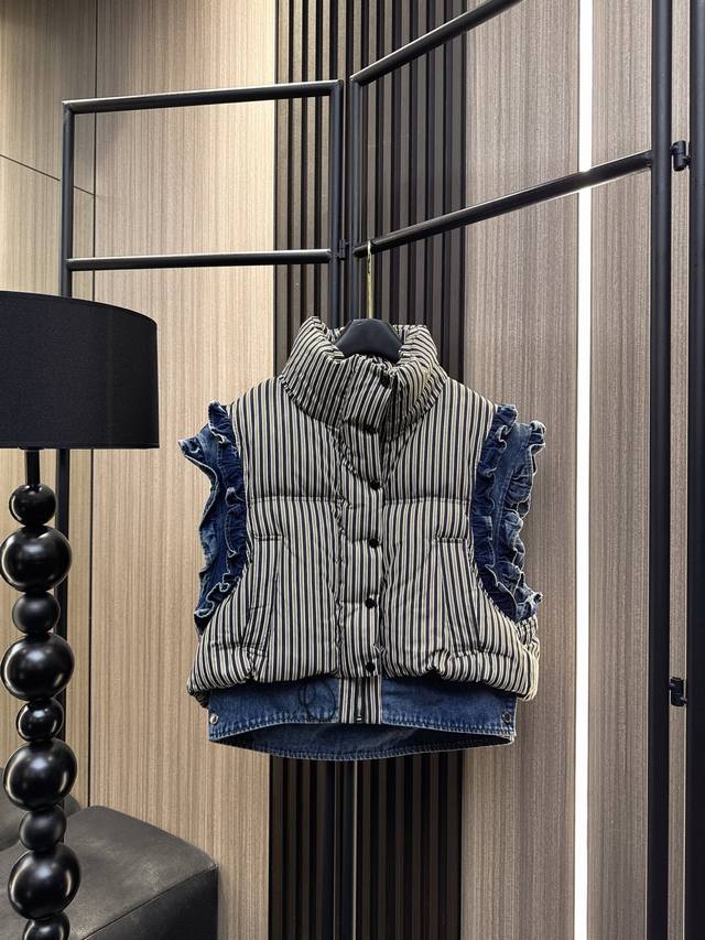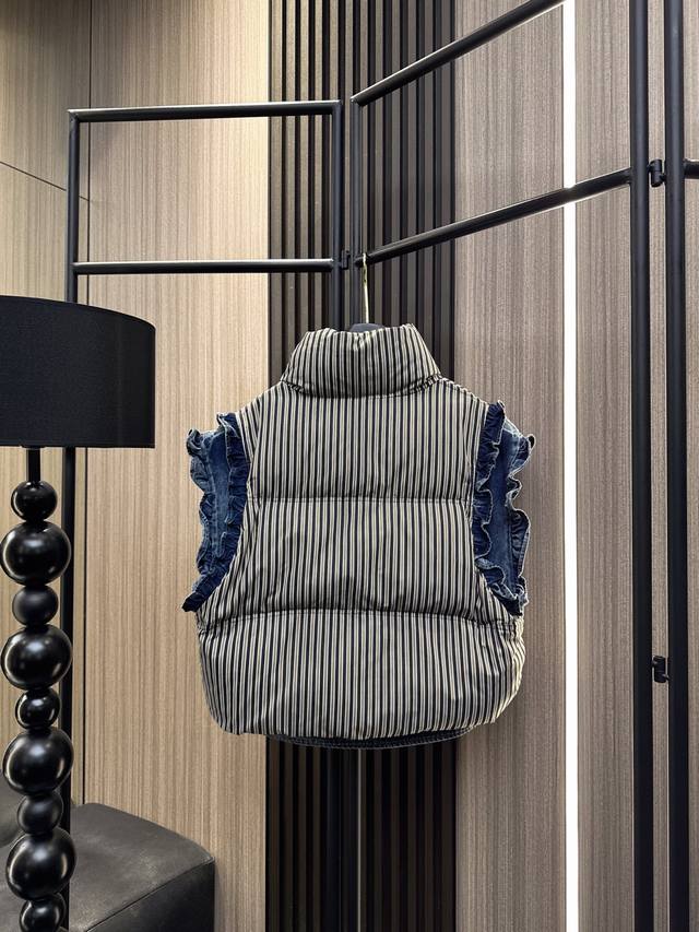 Mm6 Autumn/Winter New Arrivals! Down vest, a perfect blend of style and warmth. Denim lace trim adds a retro touch; striped stand-up collar showcases individual charm. Mid-to-low price, high-quality feel, allowing you to easily master winter fashion. Available in two colors: S, M, L, D.