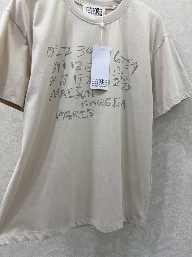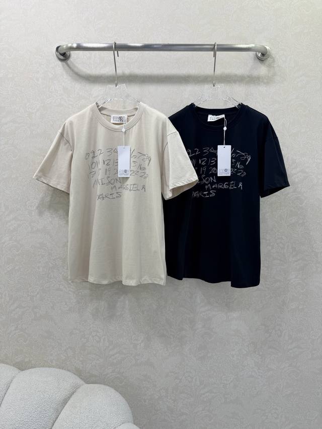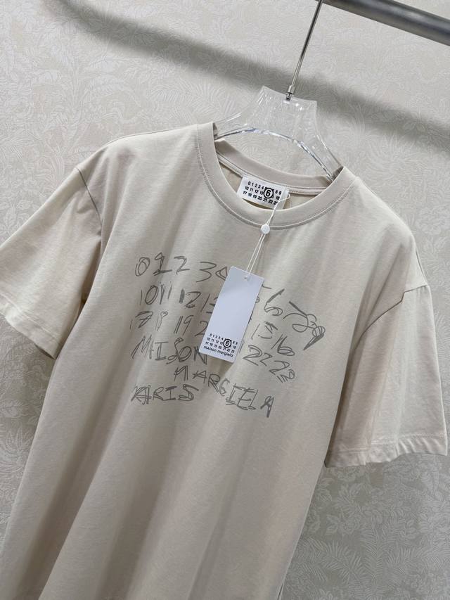 Mm6 Margiela*26 Early Spring New Arrival Short-Sleeve T-Shirt with Number and Letter Logo Print. Made of pure cotton, with a delicate texture, comfortable and breathable. Regular drop-shoulder short-sleeve cut highlights the brand's style. Made of pure cotton, it has a high-quality sheen. The tie-dye process perfectly reproduces the unique and fashionable letter logo on the chest. Regular fit, suitable for everyday wear, exuding sophisticated charm. Customized fabrics and accessories, look for the high-quality version. 2 colors, 3 sizes. Smlb. DDD
