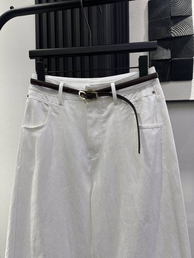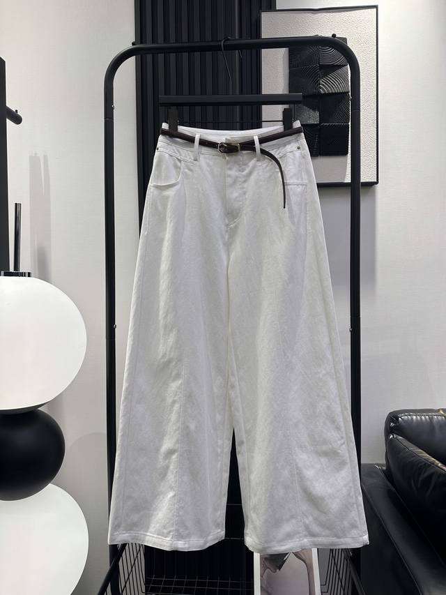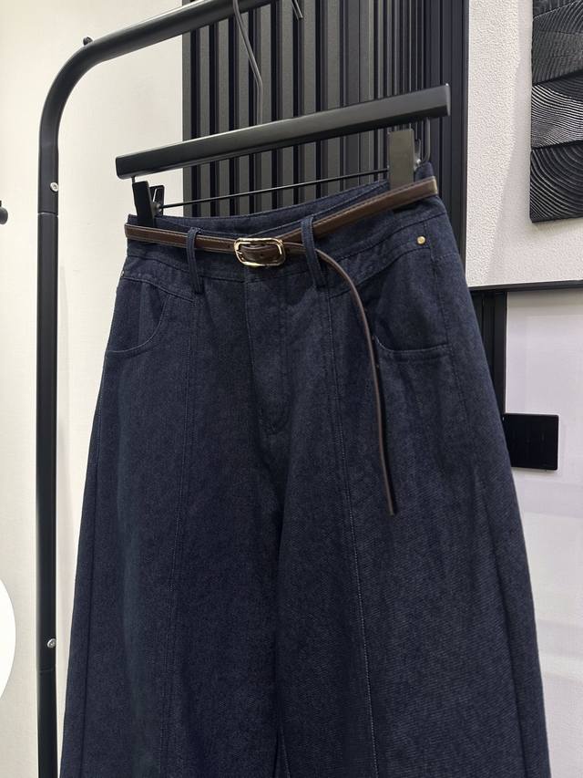 Mm6- New washed Tencel denim wide-leg pants with a thin leather belt. The shape is positive and the color is beautiful. The upper body is comfortable and versatile. It makes you look slim. Recommended two colors Smlxl