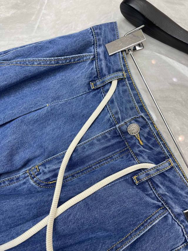 Mm6*25 New style drawstring patchwork jeans wide-leg pants! This pair of jeans is made of high-quality fabrics, washed multiple times, with a letter logo design on the back pocket. The combination of a crisp shape and a unique design, and exclusive brand accessories make you the most unique. Whether it is the forefront of fashion or daily leisure, it can make your outfit full of novelty. Create your own style and show your personality. Sml Aa.